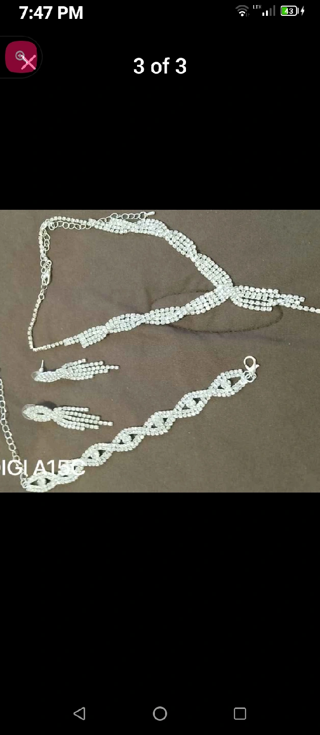 Selling a beautiful rhinestone jewellery set! It includes a necklace, bracelet, and a pair of earrings. Perfect for adding some sparkle to any outfit