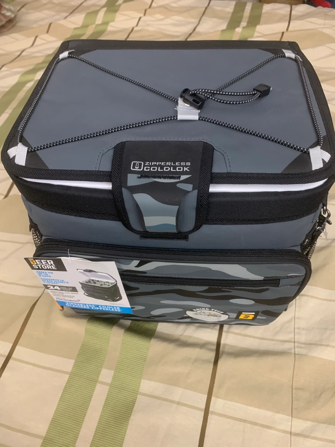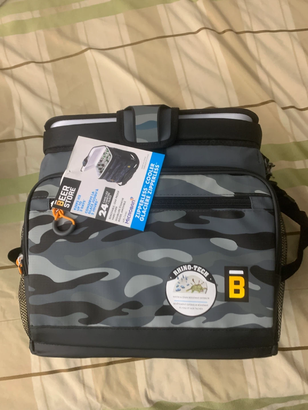 10Keep your drinks and snacks cool with this Rhino-Tech Zipperless Cooler Bag! It features a water & stain resistant exterior, making it perfect for outdoor adventures. The zipperless design ensures easy access and secure closure. It's in great condition and ready for a new home