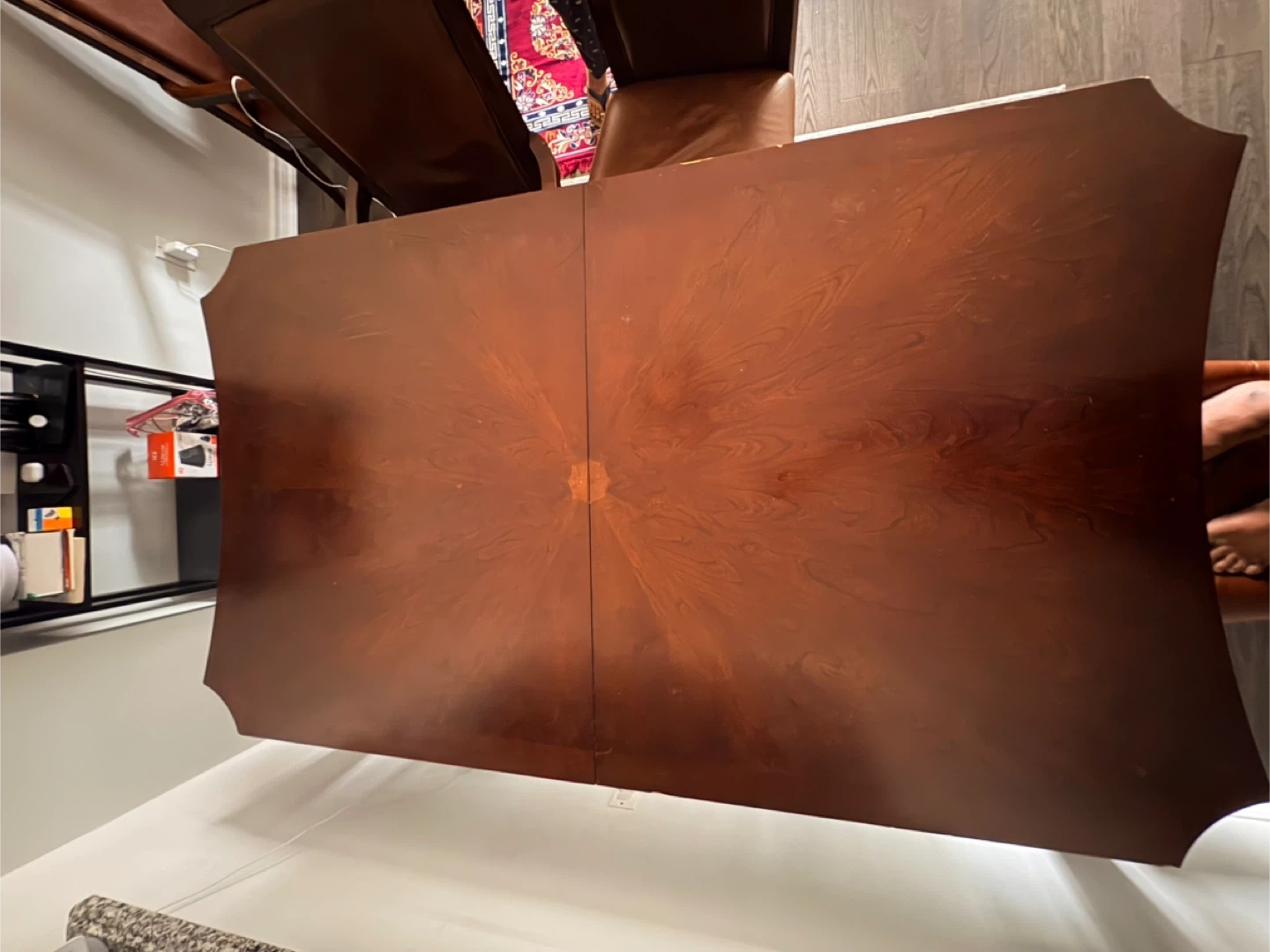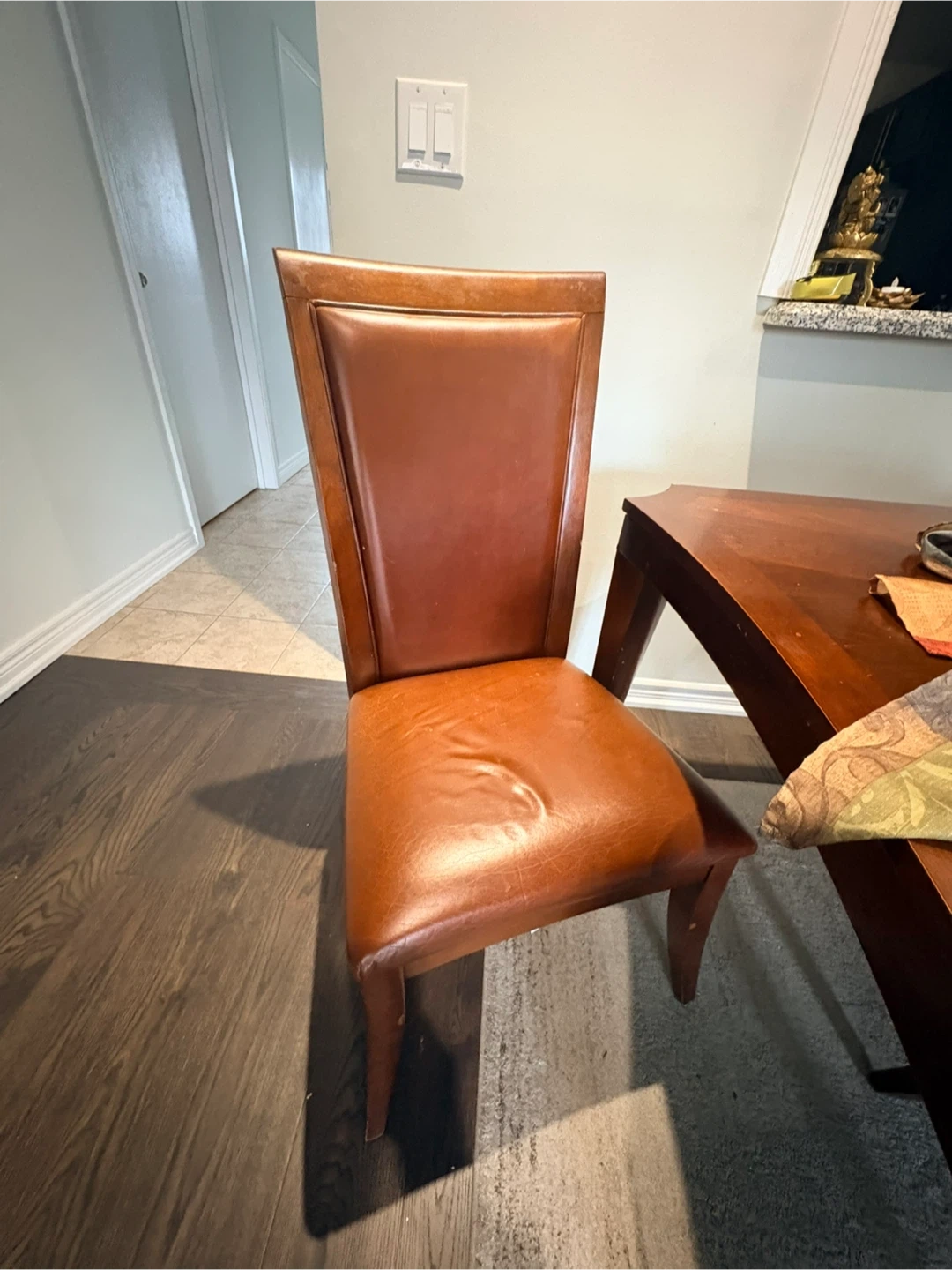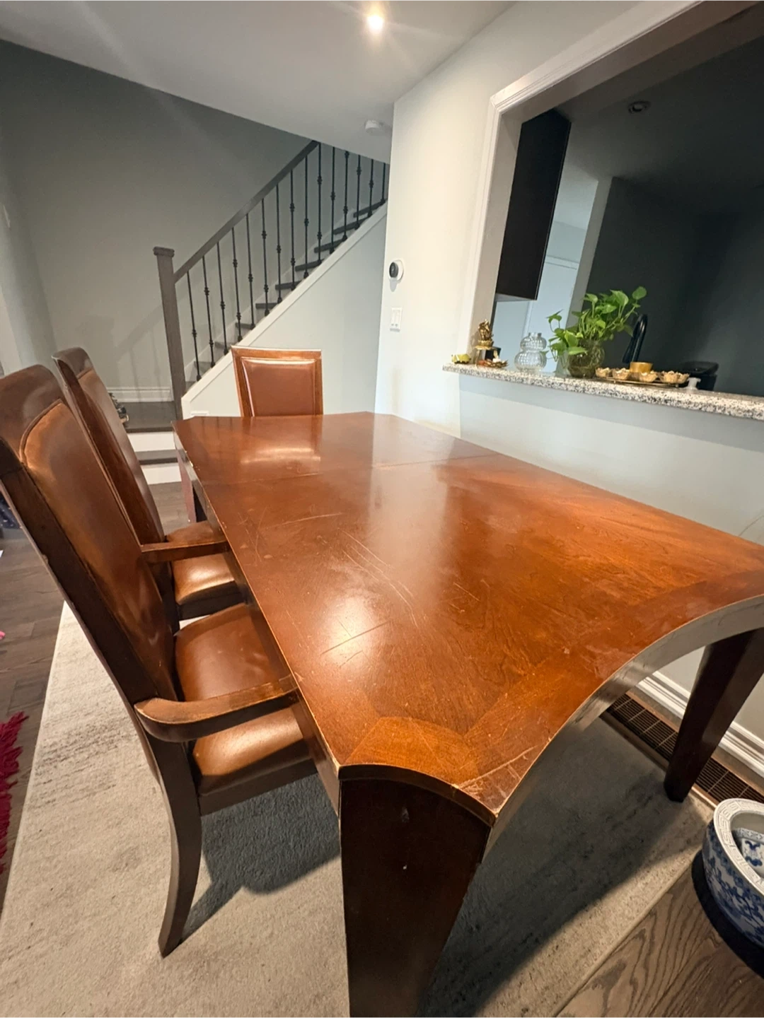 Tan Sofa with Decorative Pillows and solid wood dining table