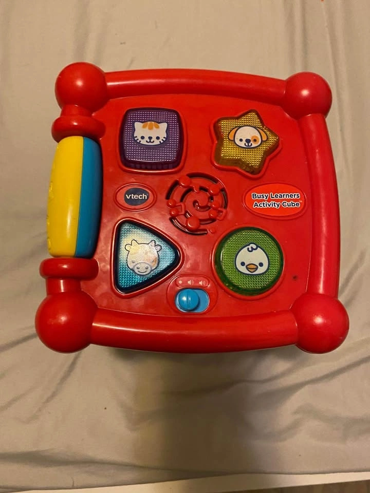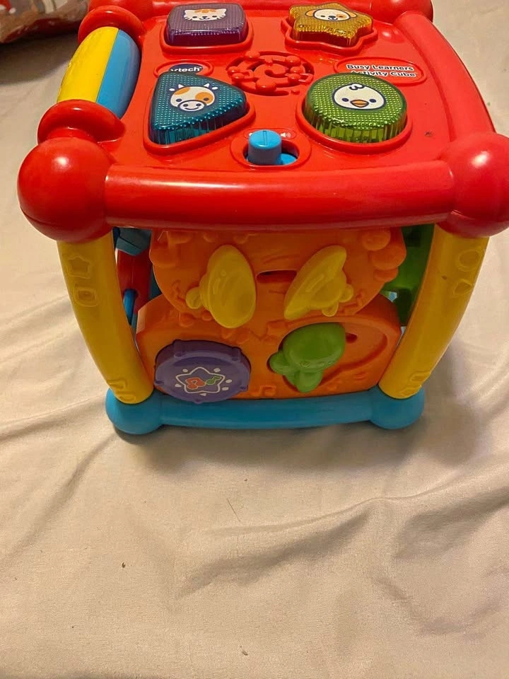 Like-new interactive music box that’s perfect for curious toddlers. It features easy-to-press buttons that play realistic animal sounds and cheerful melodies, helping babies learn cause-and-effect and animal recognition. Condition: Excellent, fully functional, and clean. Features: Multiple animal sound buttons, music mode, and bright, engaging colors. Home: Smoke-free and pet-free. Batteries included so your little one can play right away! Pickup only at Sheppard & Bayview.