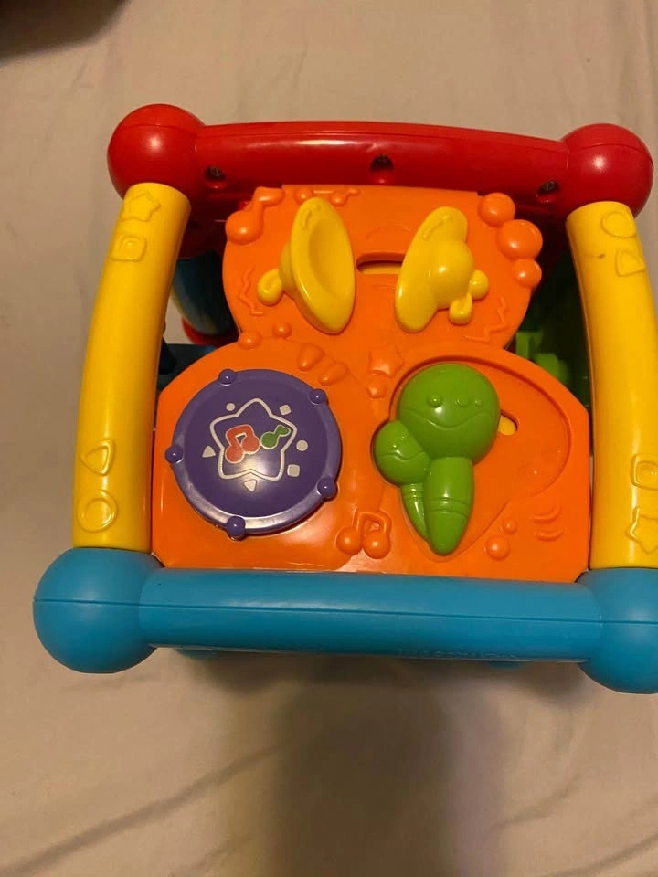 Like-new interactive music box that’s perfect for curious toddlers. It features easy-to-press buttons that play realistic animal sounds and cheerful melodies, helping babies learn cause-and-effect and animal recognition. Condition: Excellent, fully functional, and clean. Features: Multiple animal sound buttons, music mode, and bright, engaging colors. Home: Smoke-free and pet-free. Batteries included so your little one can play right away! Pickup only at Sheppard & Bayview.