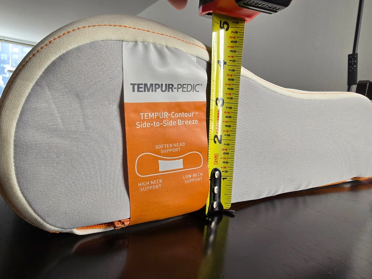 Get all 3 for free. Tempur-Pedic Contour Side-to-Side Breeze pillow. Softer head support. High neck and low neck support. Approximately 24 inches long and 6 inches high.