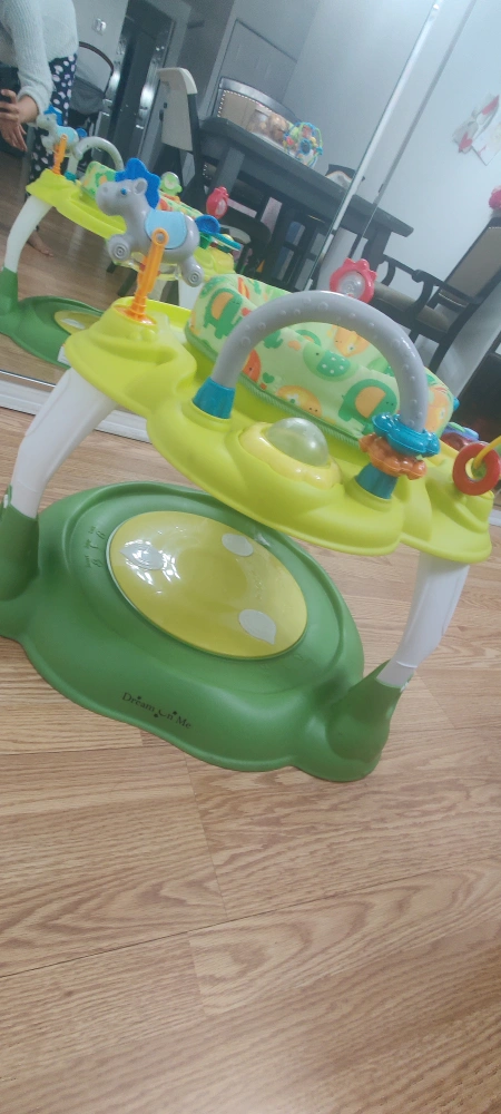 Dream On Me baby activity center in excellent condition. This activity center features a sturdy base with an attached disc, allowing your baby to bounce and jump safely while enjoying interactive play. The bright and colorful design, combined with engaging toys, makes it perfect for developing motor skills and keeping your little one entertained. The seat rotates 360° for full access to all activities. Clean and ready to use!