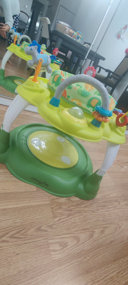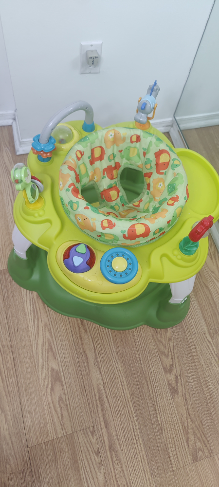 Dream On Me baby activity center in excellent condition. This activity center features a sturdy base with an attached disc, allowing your baby to bounce and jump safely while enjoying interactive play. The bright and colorful design, combined with engaging toys, makes it perfect for developing motor skills and keeping your little one entertained. The seat rotates 360° for full access to all activities. Clean and ready to use!