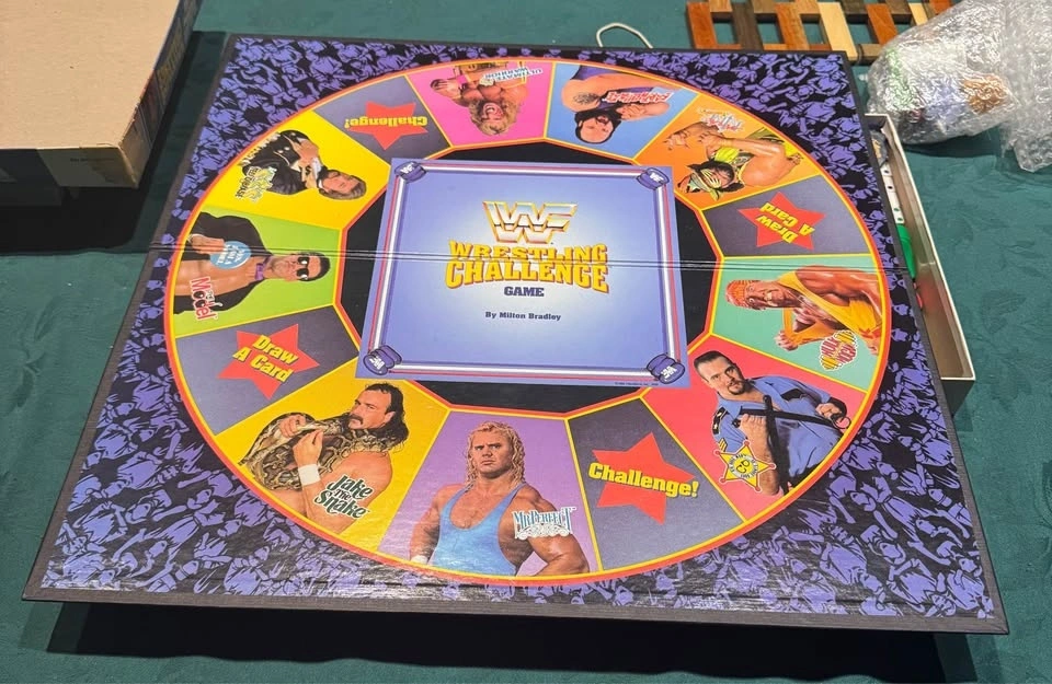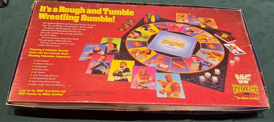 Missing 1 generic die (easily replaced) and the 9 wrestler cards — game board, box, pawns, belt chips, and other components included. Still playable with substitutions or great for display / nostalgia.