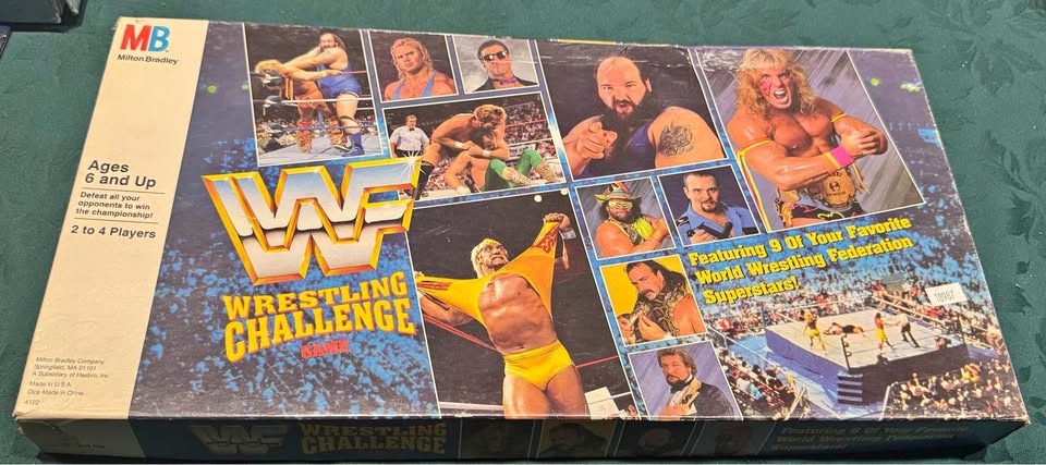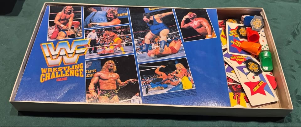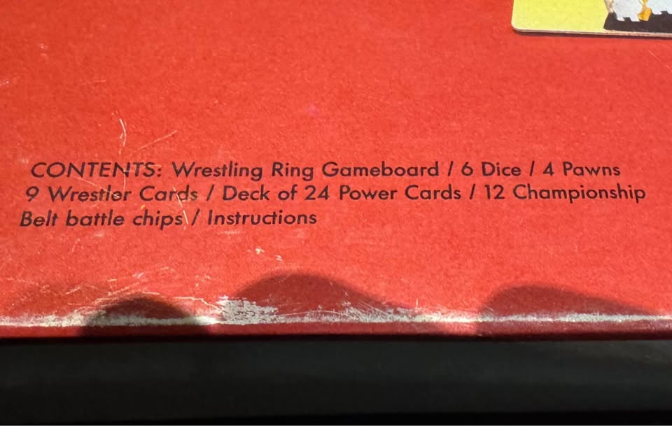 Missing 1 generic die (easily replaced) and the 9 wrestler cards — game board, box, pawns, belt chips, and other components included. Still playable with substitutions or great for display / nostalgia.