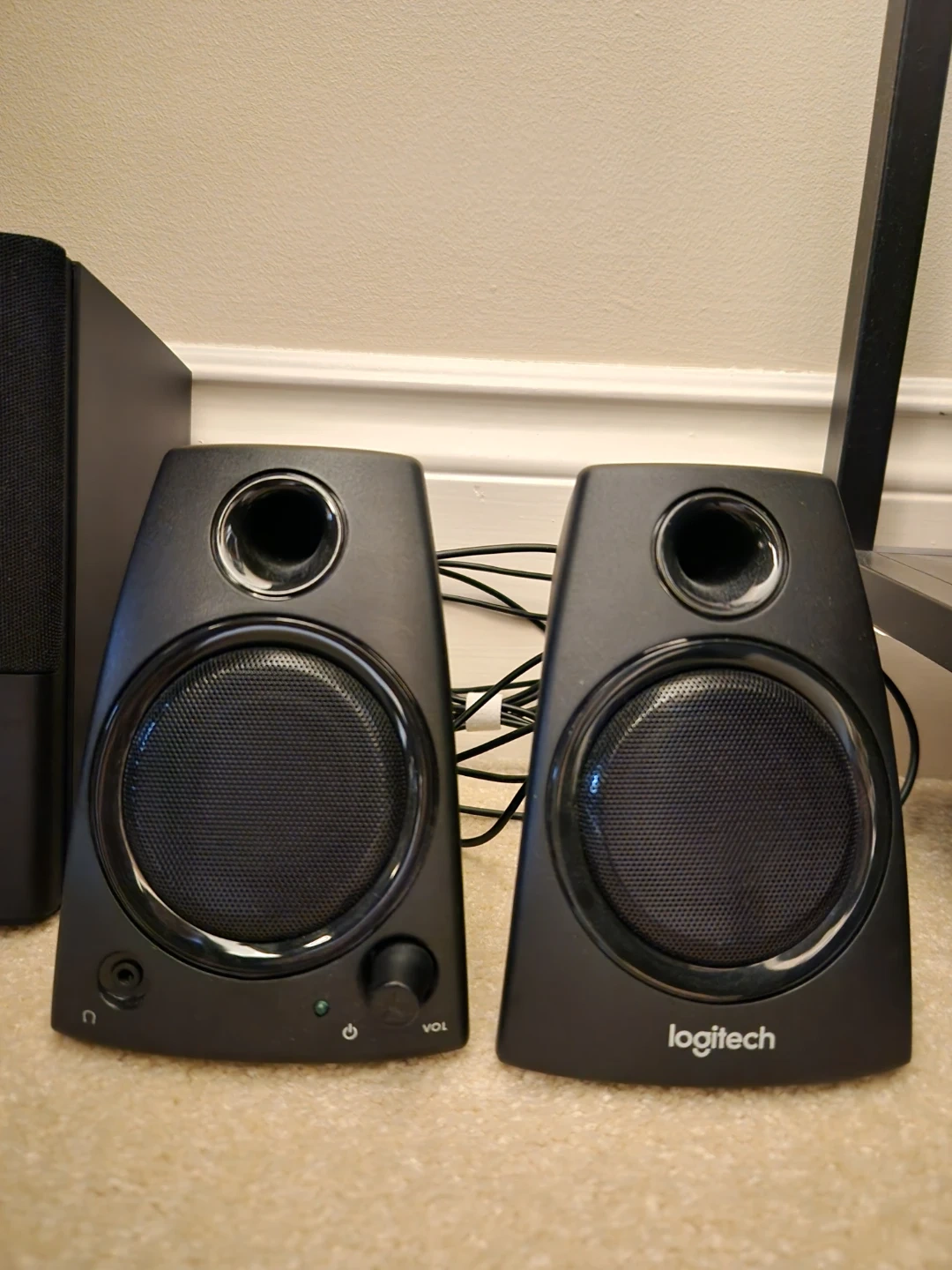 Selling a pair of Logitech Z130 stereo speakers in black. They're in great shape and ready to use! These speakers are perfect for your computer or any audio setup where you need clear and reliable sound.