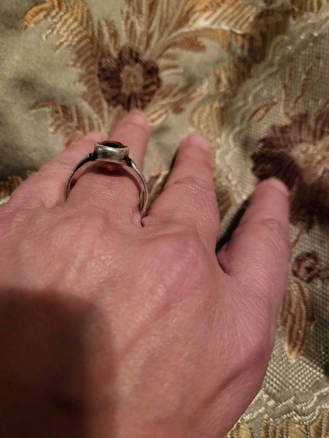 Large oval garnet red stone, size 10, and it is sizeable. I think it is silver but may be white gold, as there is no stamp but it has been sized. This ring is from our family vintage estate. Stunning ring, may be a great deal and treasure. Condition: Used - Like new. For Sale By: Owner.