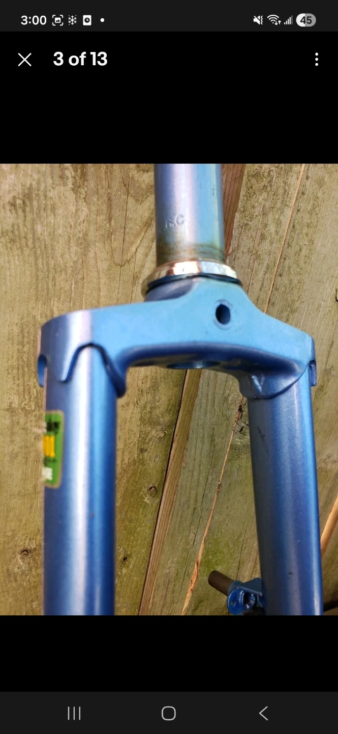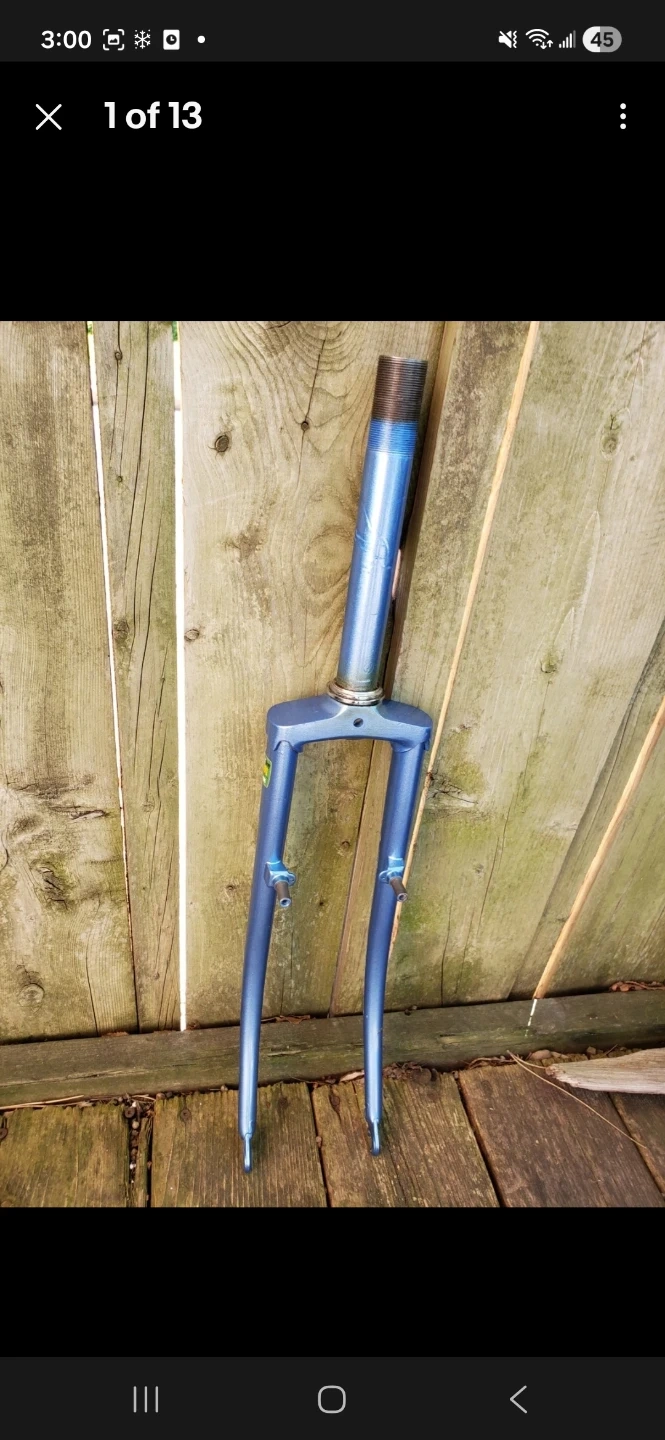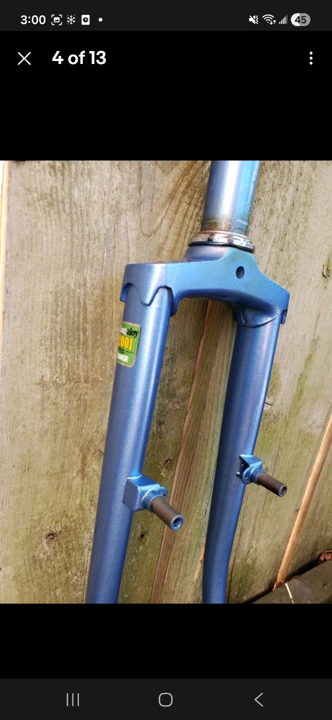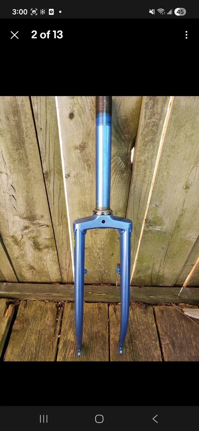 Buy & SellVintage Tange 26 MTB fork 1 inch threadedVintage Tange 26 MTB fork 1 inch threaded$80This is a blue bicycle fork. It's a metal component for a bicycle. It's likely a replacement part or for a custom build.WHERE TO MEETCheck LocationView MapSELLEREricMaple100 reviews0 chats·0 favorites·3 viewsSEND CHAT TO SELLERHi Eric! I’m interested in your listing.Hi Eric! I’m interested in your listing.Get the Karrot app to chatSign In to chat