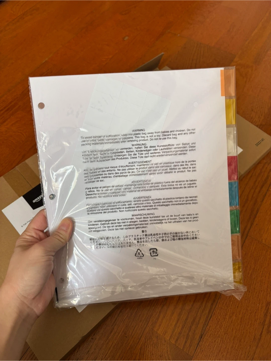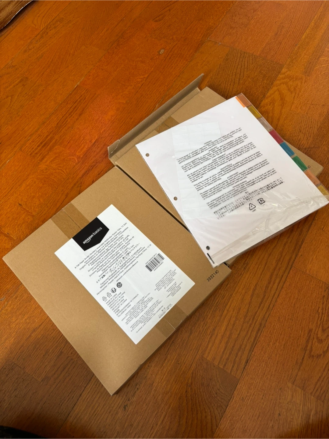 This package contains Amazon Basics clear plastic sheet protectors. They're designed to keep your documents safe from damage. Includes multicolour tab dividers.
