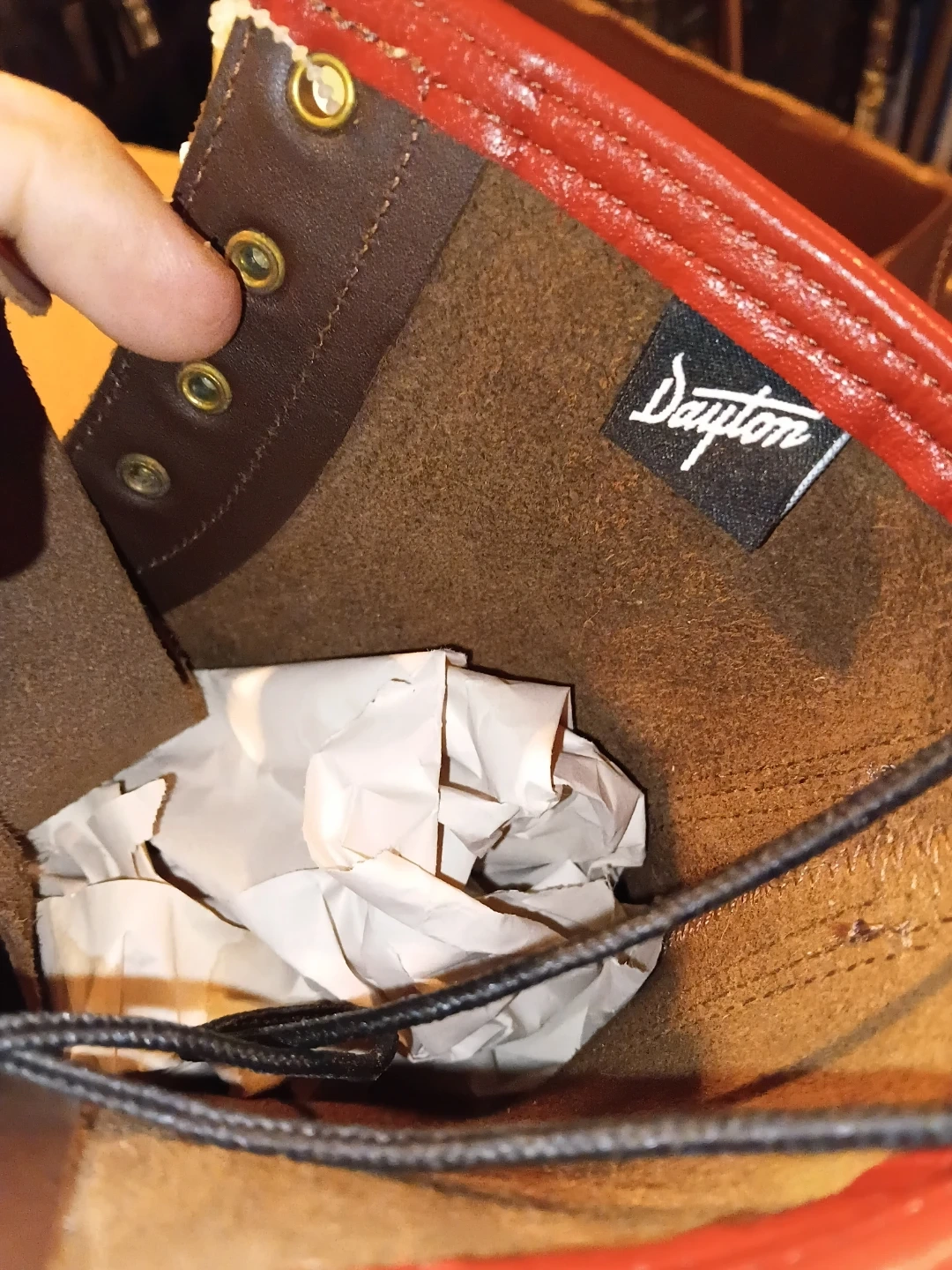 Selling a pair of Dayton work boots in brown leather. They appear to be in great condition and are a size 11.5. Perfect for any tough job or outdoor adventure!