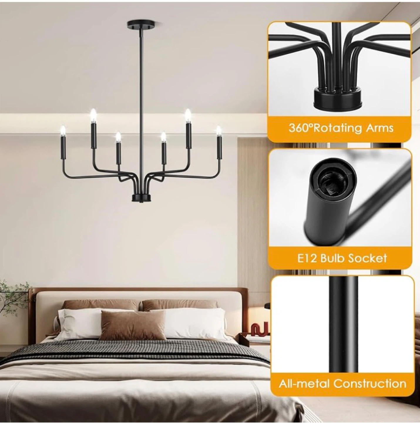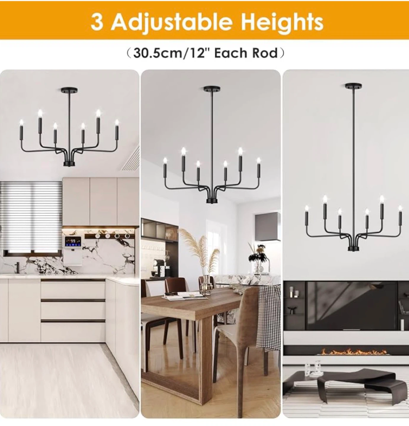 BRAND NEW Chandelier,Modern Dining Room Light Fixture,6-Light Chandeliers Ceiling Lights,Easy Install Farmhouse Light Fixtures,Adjustable Height Dining Room Light for Bedroom,Living Room,Kitchen
