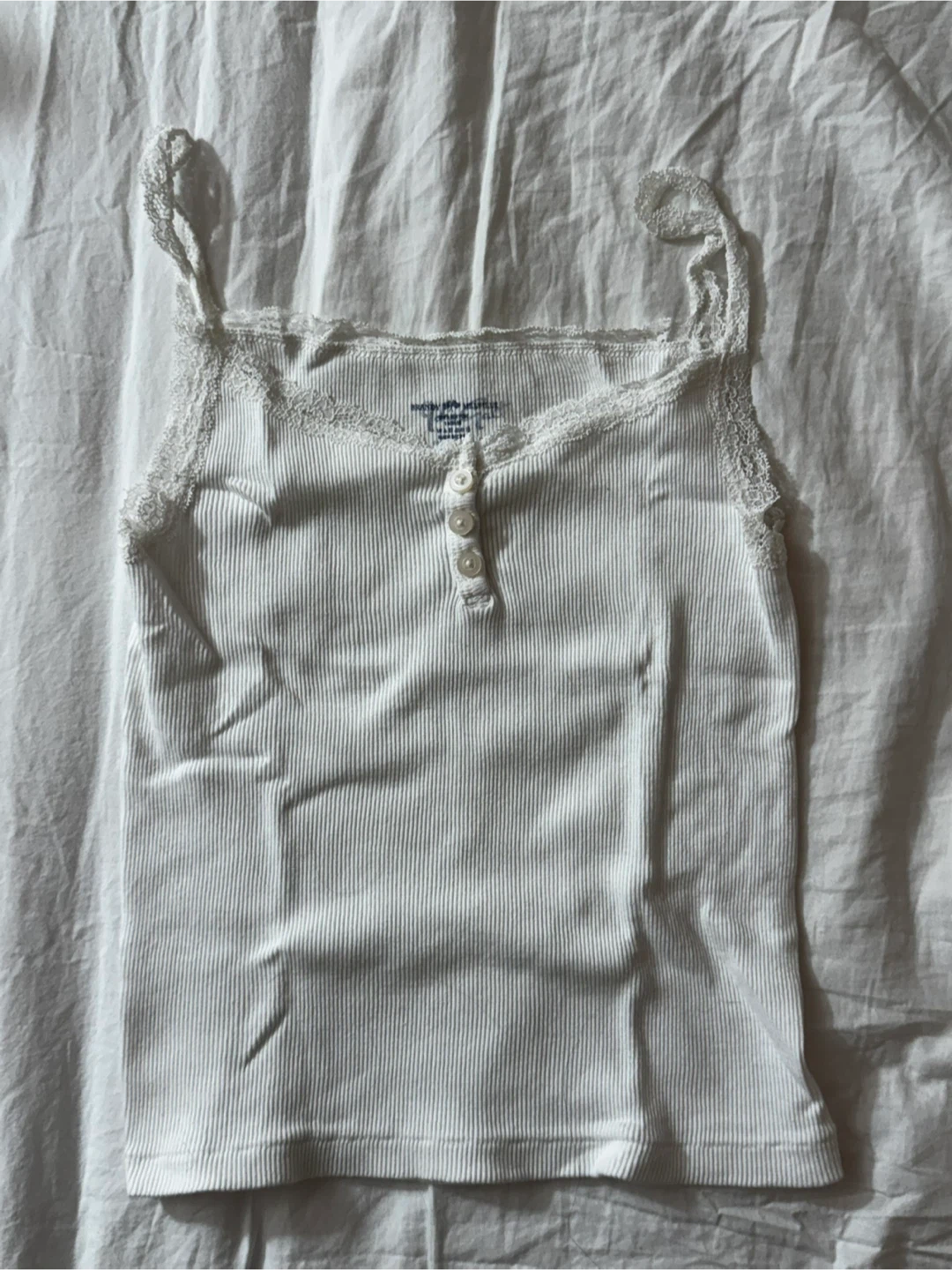 Brandy Melville White Ribbed Lace Trim Button Camisole Top