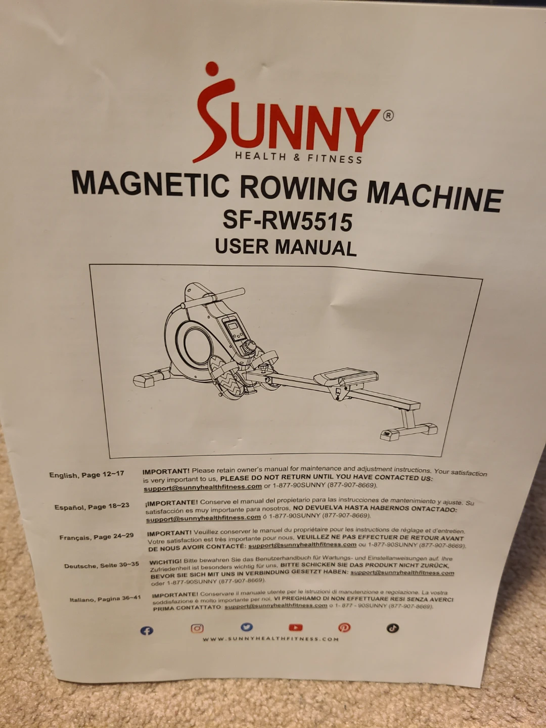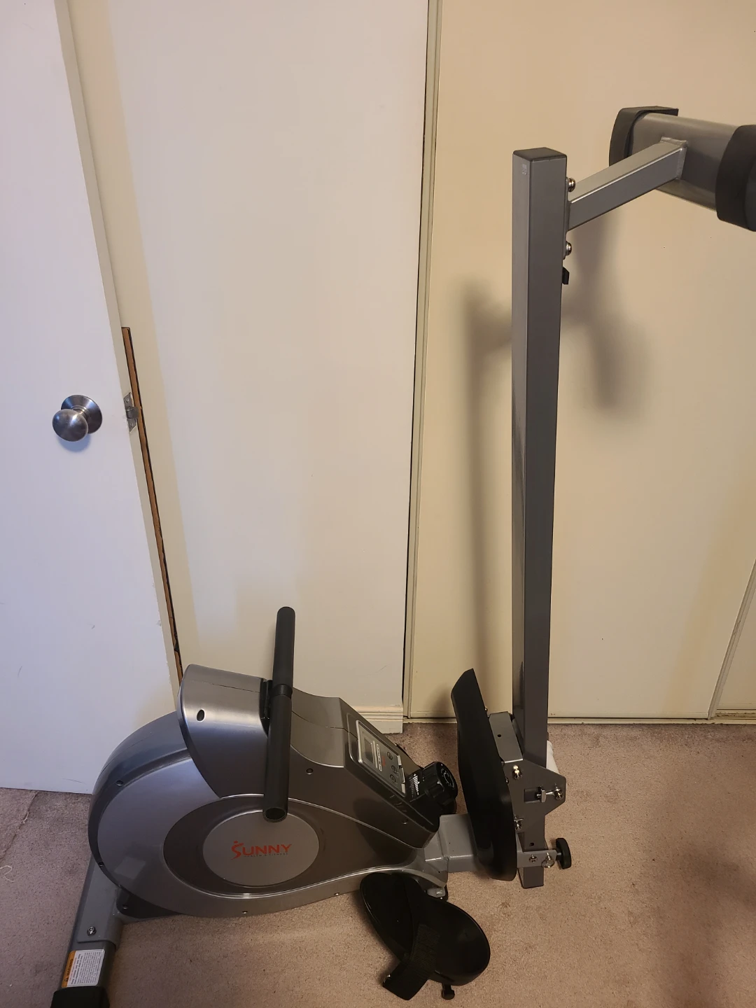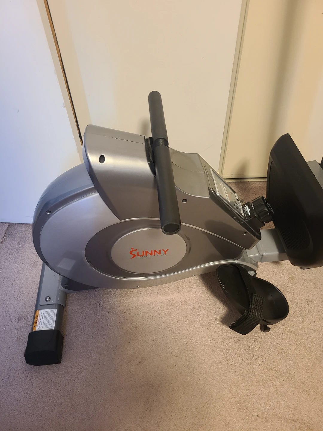 Selling a Sunny Health & Fitness rowing machine. It's in good condition and ready for a new workout buddy! The display shows scan, time, count, total count, and calories burned, so you can keep track of your progress. Brand new, professionally assembled, comes with Instructions Manual and tools for any eventual adjustments. 250lb weight capacity.