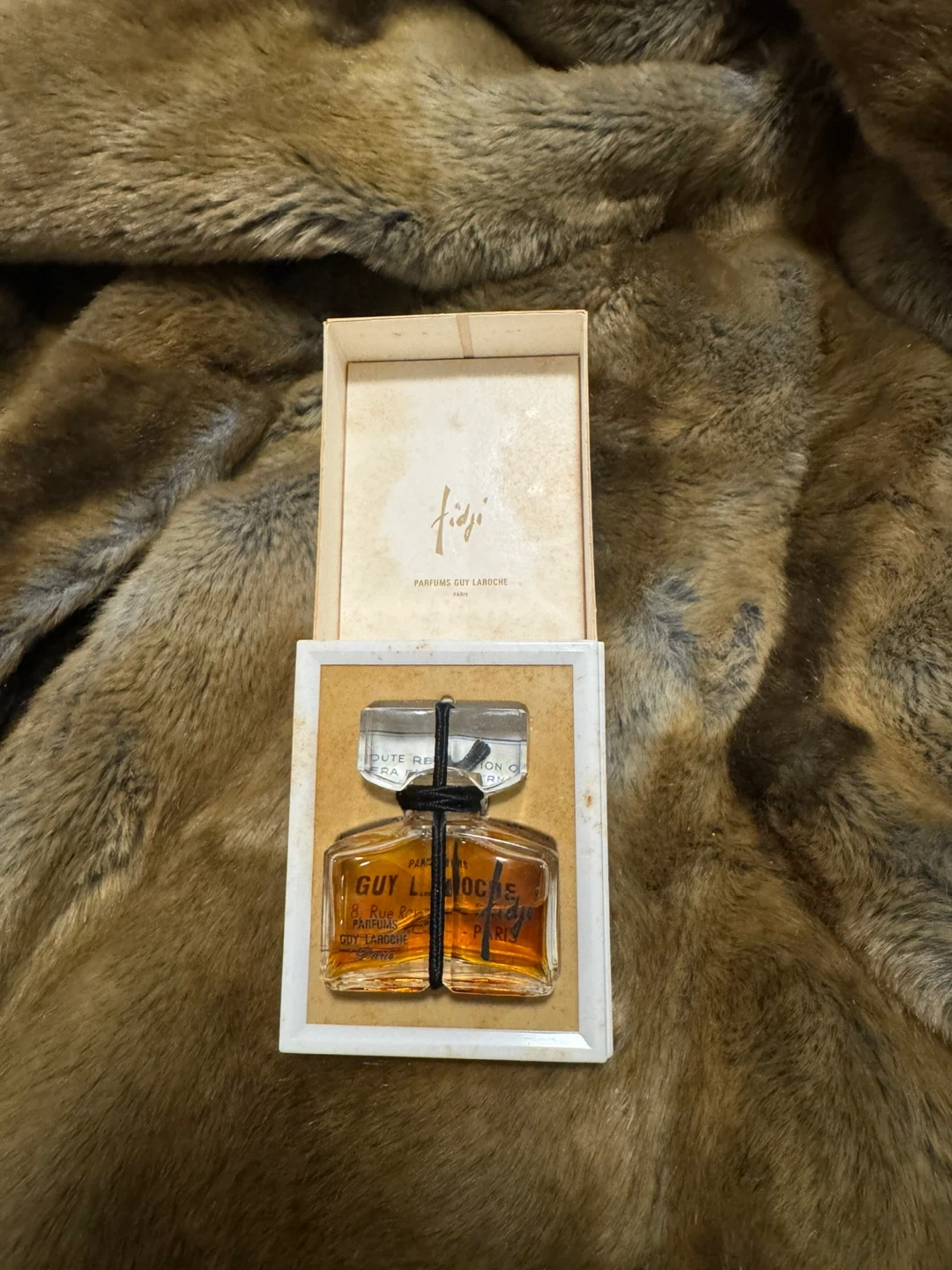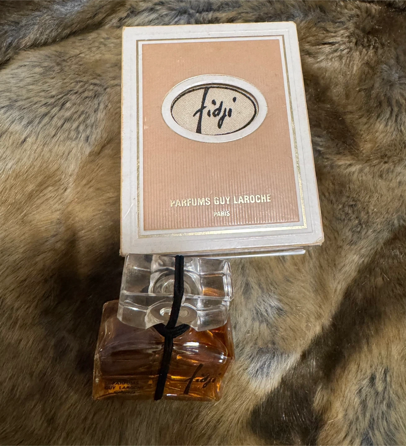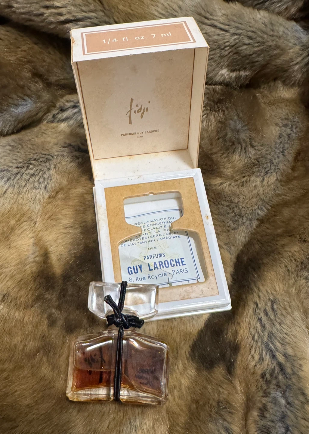 This is a vintage 7ml bottle of Fidji perfume by Guy Laroche Paris.