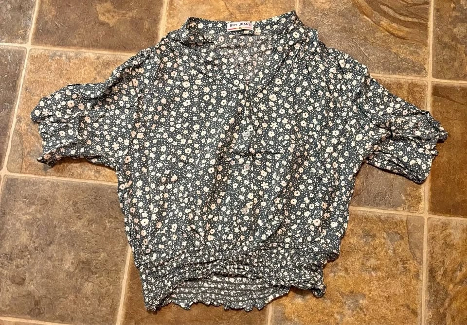 Features a delicate all-over floral print with a button-down front. The smocked waist accentuates your silhouette while staying comfortable. Lightweight, breathable fabric—perfect for layering or wearing on its own. From BNY Jeans, known for trendy, high-quality casual wear.