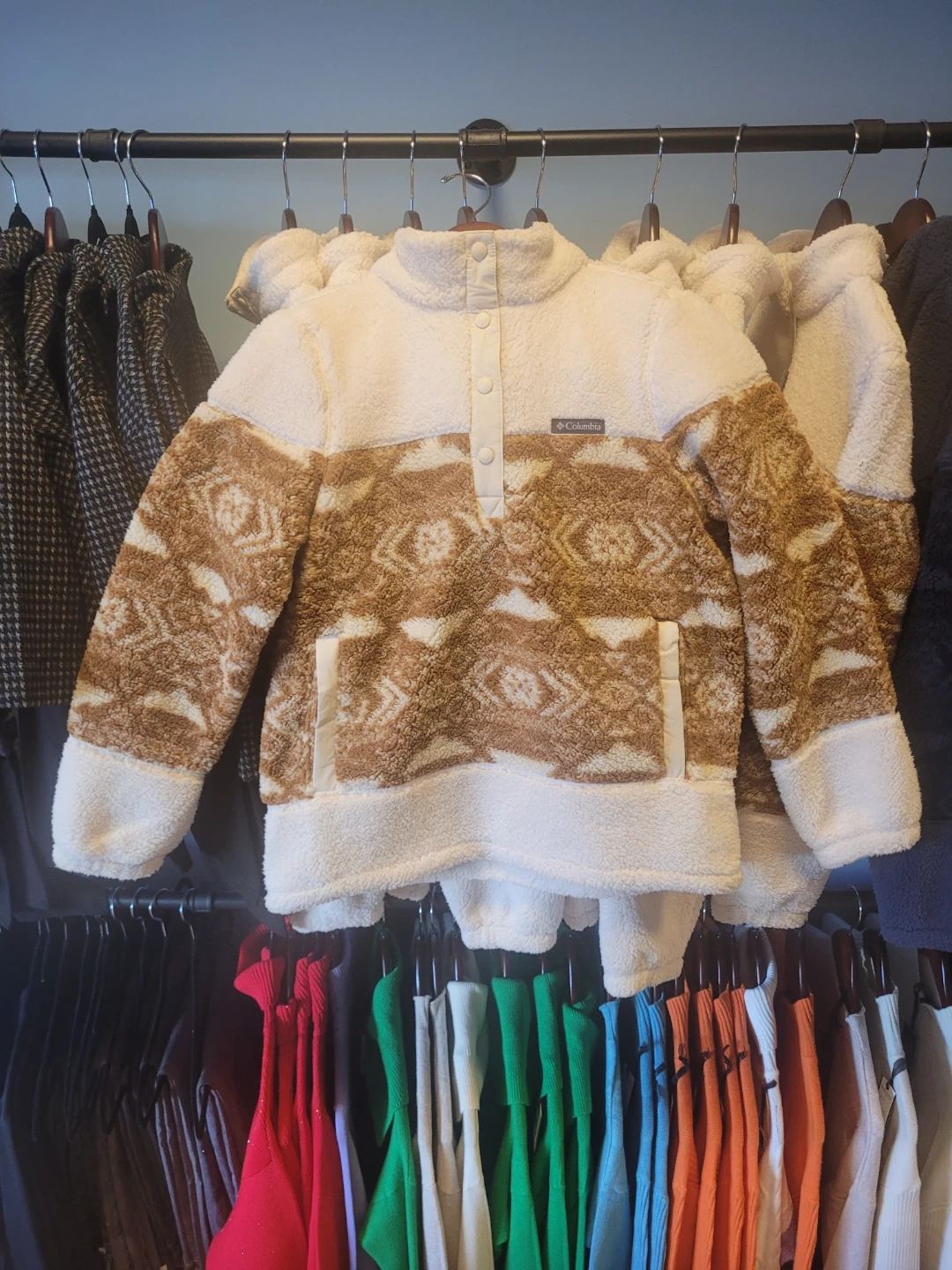 Selling these new Womens Columbia fleece pullovers in cream and brown.