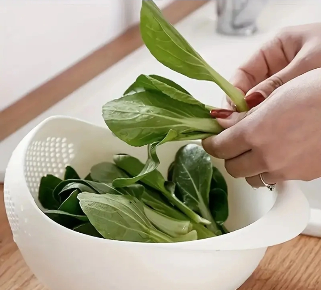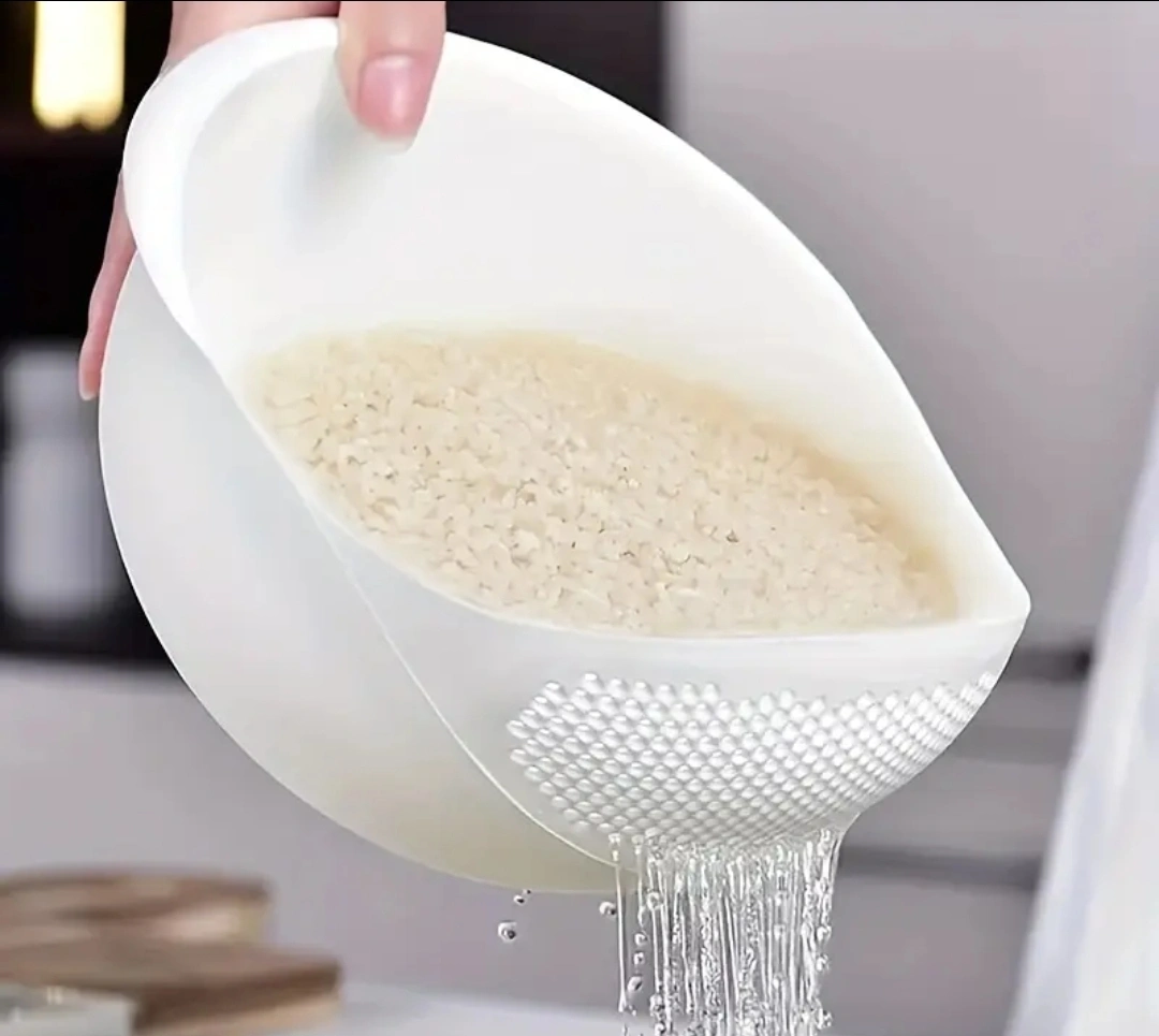 74This is a rice washing bowl with a built-in drainer basket. It's perfect for washing rice, grains, fruits, and vegetables. The bowl is designed to make rinsing easy and efficient, and the drainer basket prevents food from escaping. It’s a great addition to any kitchen!