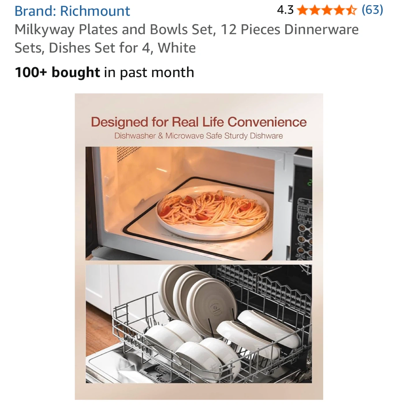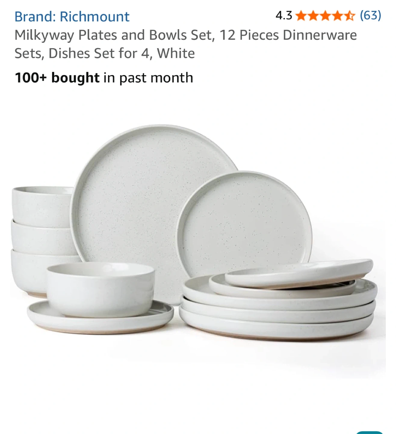 145Selling a Richmount Milkyway plates and bowls set, a 12-piece dinnerware set for 4 in white! These dishes are designed for real-life convenience, as they are dishwasher and microwave safe. They are also scratch-resistant and easy to clean, saving you time and effort. The set includes dinner plates, salad plates, and cereal bowls.