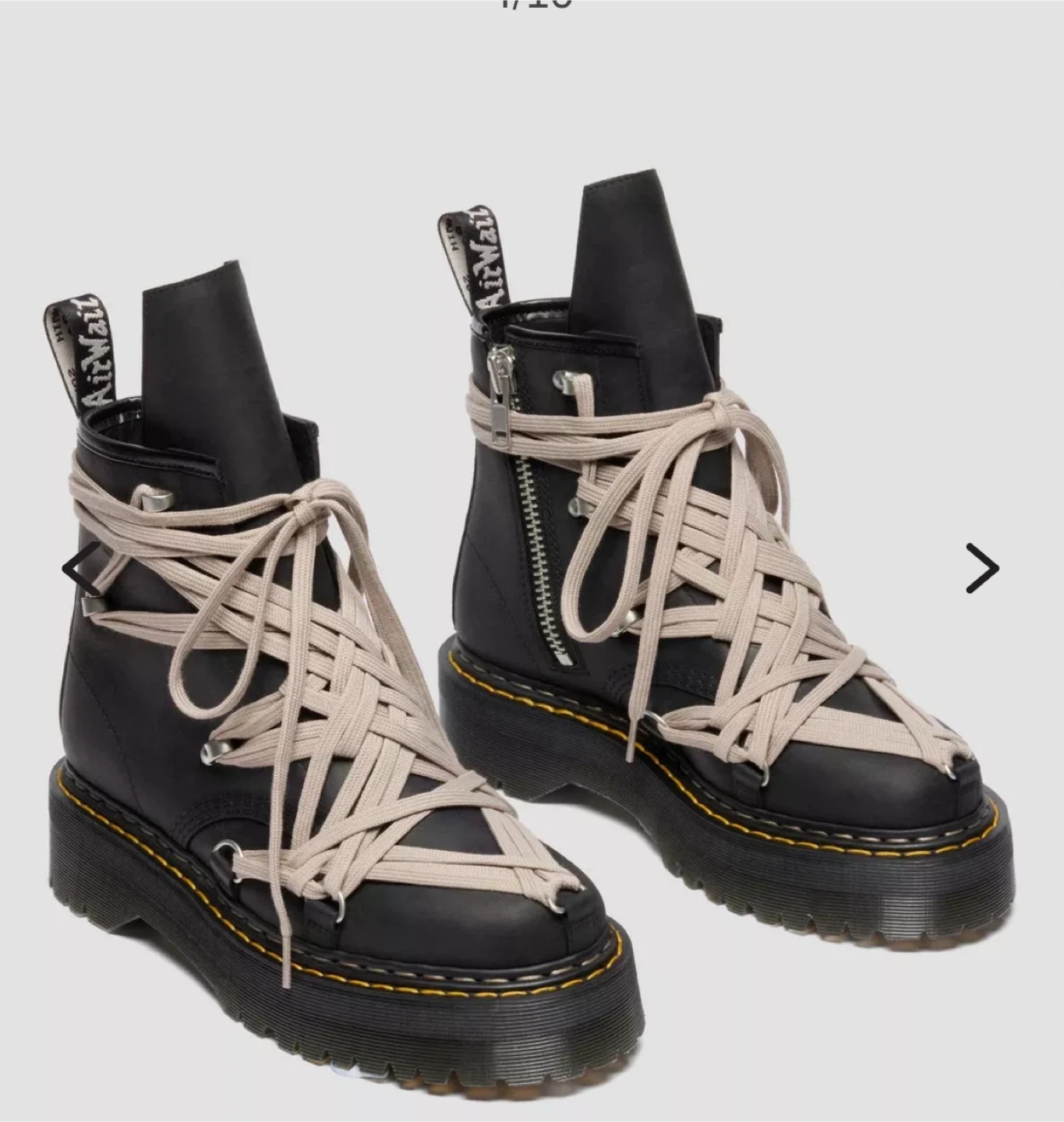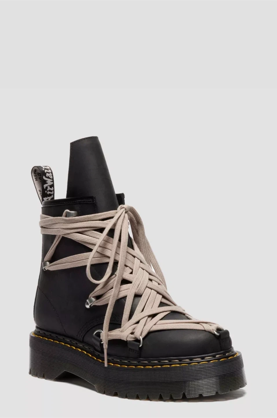 60Selling a pair of Rick Owens x Dr. Martens 1460 Megalace Quad RO boots. The size is US 6 men's) or US 7 (women's). European 38. UK size 5