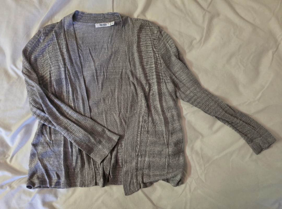 86Momma is updating her wardrobe. Grey cardigan from Ricki's. Size M and in great condition.