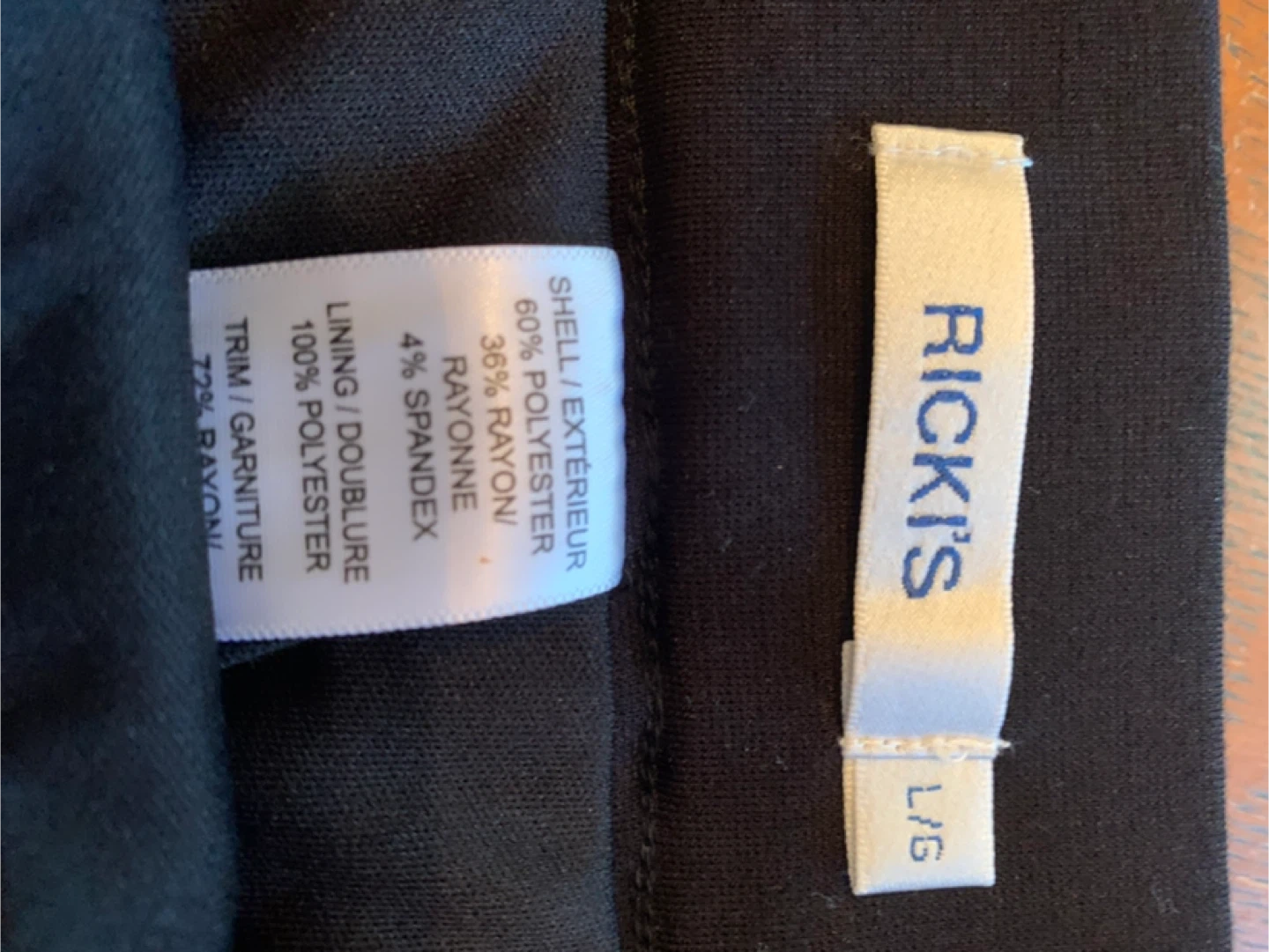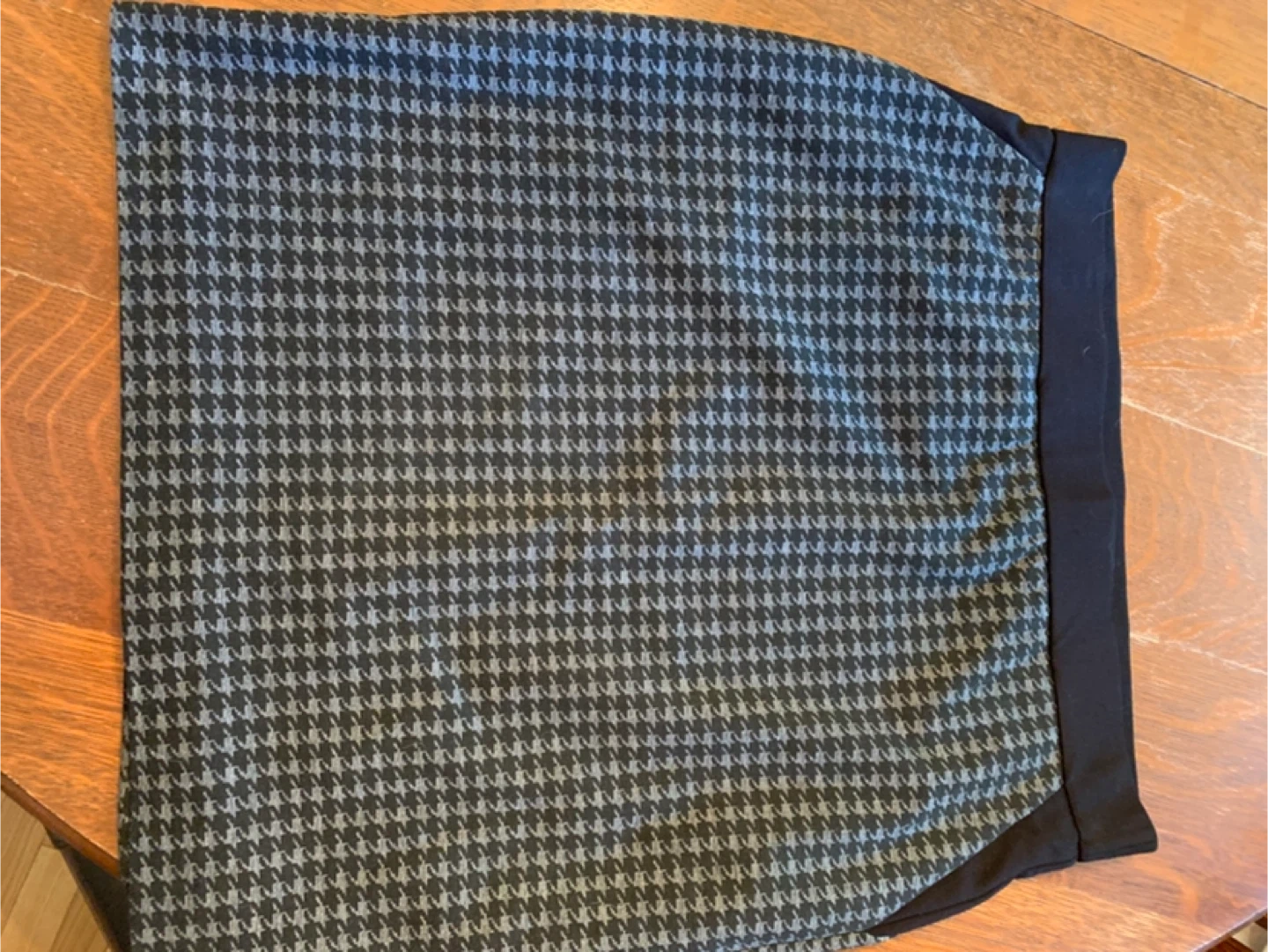 This skirt is a stylish houndstooth pattern from Rickis. It's a size large and made with a blend of polyester, rayon, and spandex for a comfortable fit. The trim is rayon and the lining is polyester