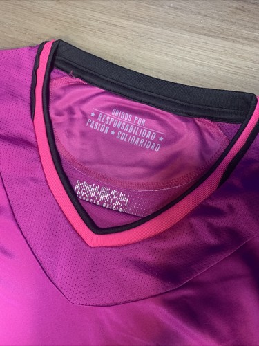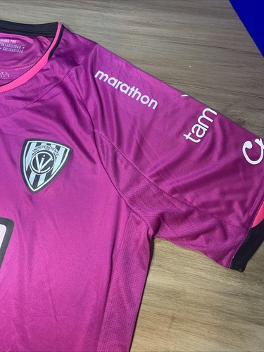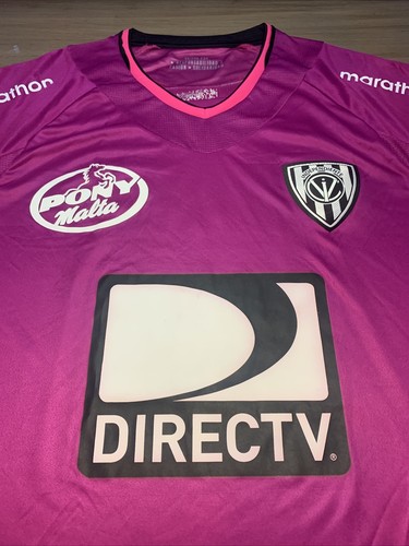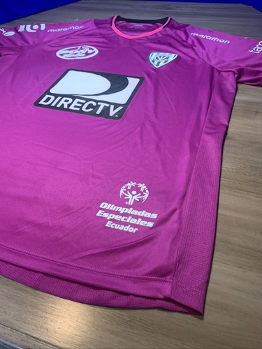 Crafted for the avid soccer enthusiast, this Marathon Independiente del Valle 2015 Away Jersey is a must-have for any collection. Representing the vibrant spirit of Ecuadorian football, this purple jersey is a standout piece, mirroring the team's vibrant play on the field. Sized XL, it provides a comfortable fit for supporters looking to cheer from the stands or play a match. This authentic Marathon product is officially licensed and crafted with attention to detail, ensuring high-quality fabric and a design that honors the sport. Ideal for fans of the game and collectors alike, it's a tangible piece of soccer history.