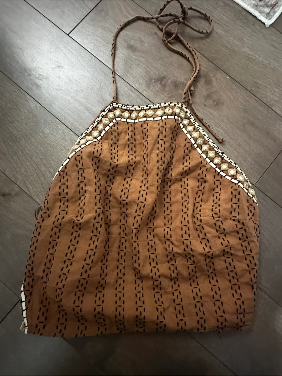 New Zara Brown Beaded Halter Top Size L