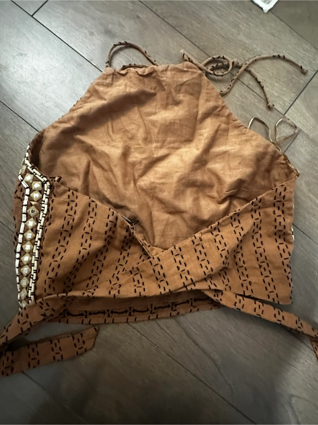 New Zara Brown Beaded Halter Top Size L
