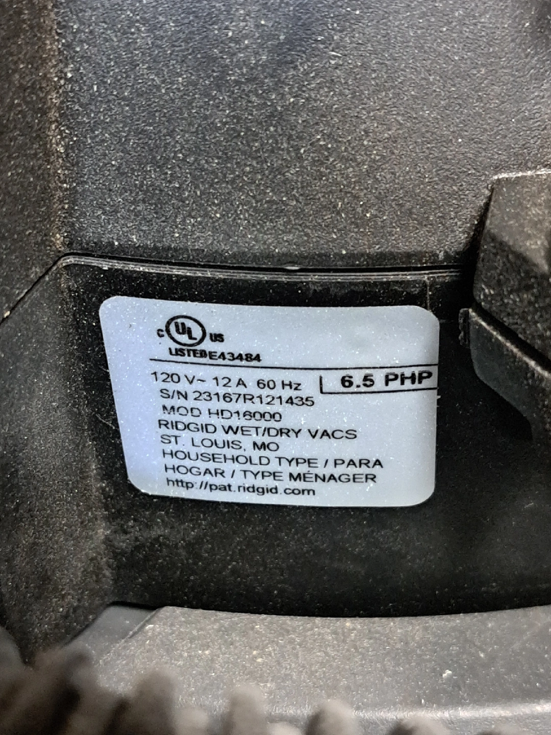 Selling a Ridgid wet/dry vacuum, model HD16000. It's a household type vacuum with 6.5 PHP. only used twice for water clean up. Great for cleaning up messes around the house or in the garage! also the top comes off to use as a leaf blower. sells for 258 at home depot