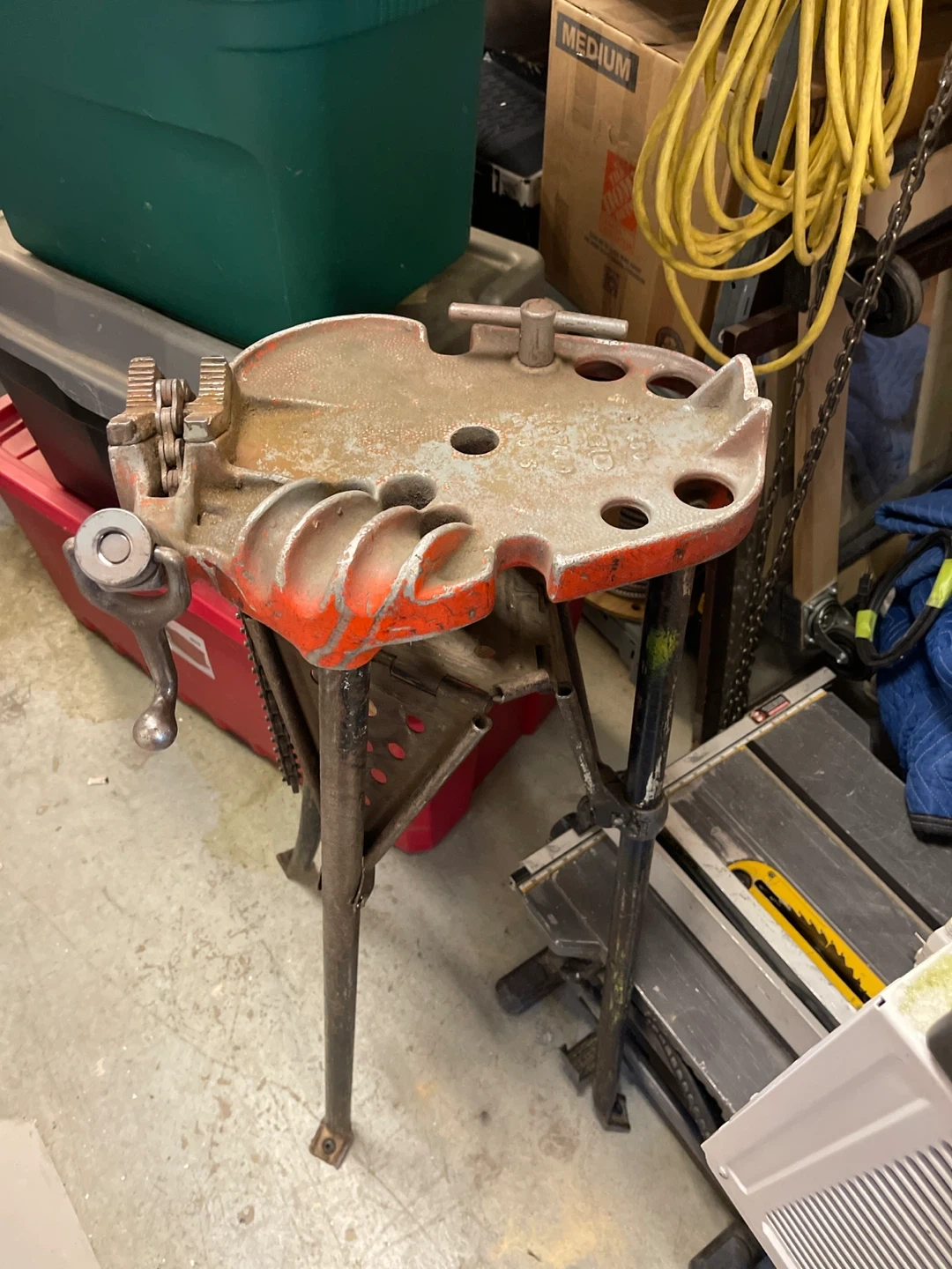 Selling a RIDGID pipe stand. It's in used condition but still works great for holding pipes while you work on them! Perfect for any plumber or DIY enthusiast