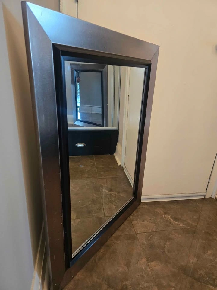 2) Rectangular wall mirror with bronze frame, in good condition. Size 35"x27". For $20 cash.