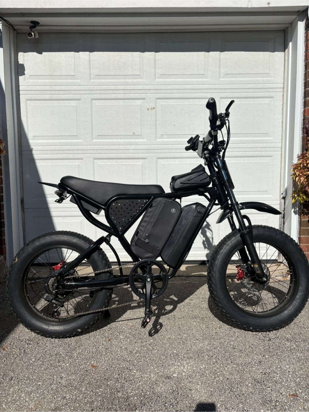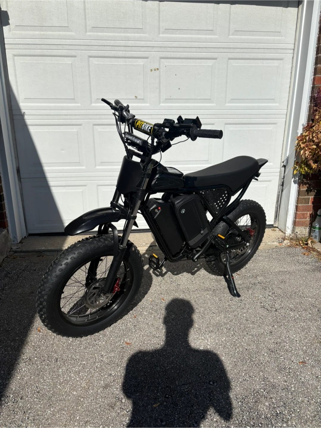 Ridstar Q20 electric bike 1500w 48v 20ah bought it about a couple weeks ago. don’t really have time to use it. i’ve only gone 32 miles on it. has some mods to it: new handle bars new headlight new odi plate new storage bag new front fender new rear fender also comes with a bunch of extra parts and original charger LOOKING FOR OFFERS OR TRADES FOR GRADED POKEMON, SOCCER, OR BASKETBALL CARDS FEEL FREE TO MESSAGE ME ABOUT ANY QUESTIONS!!