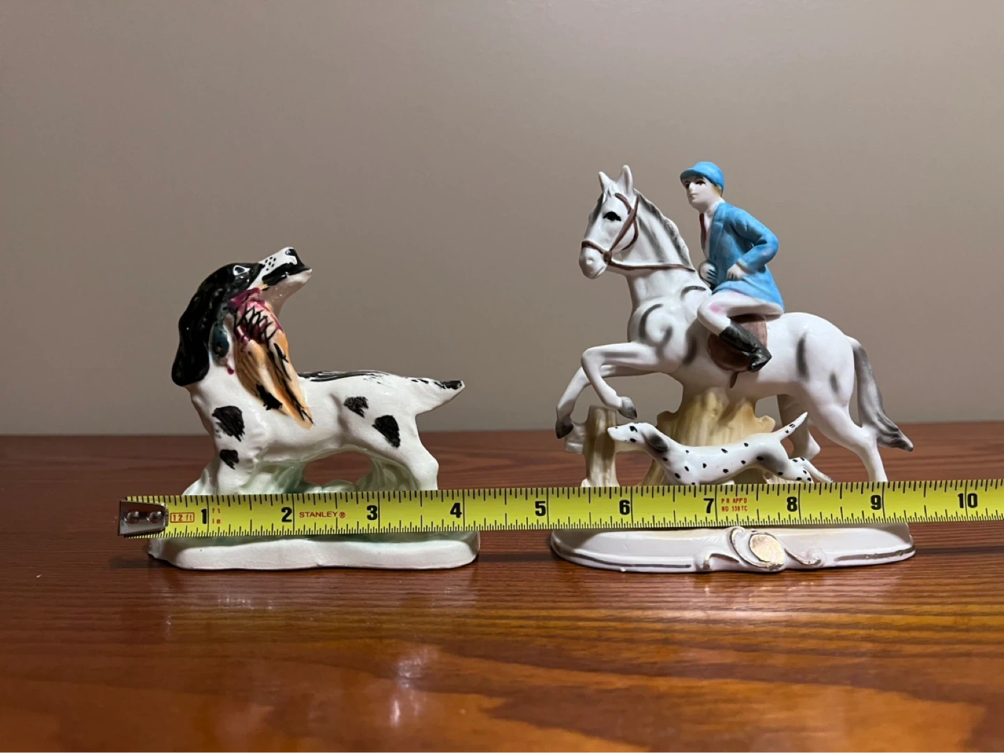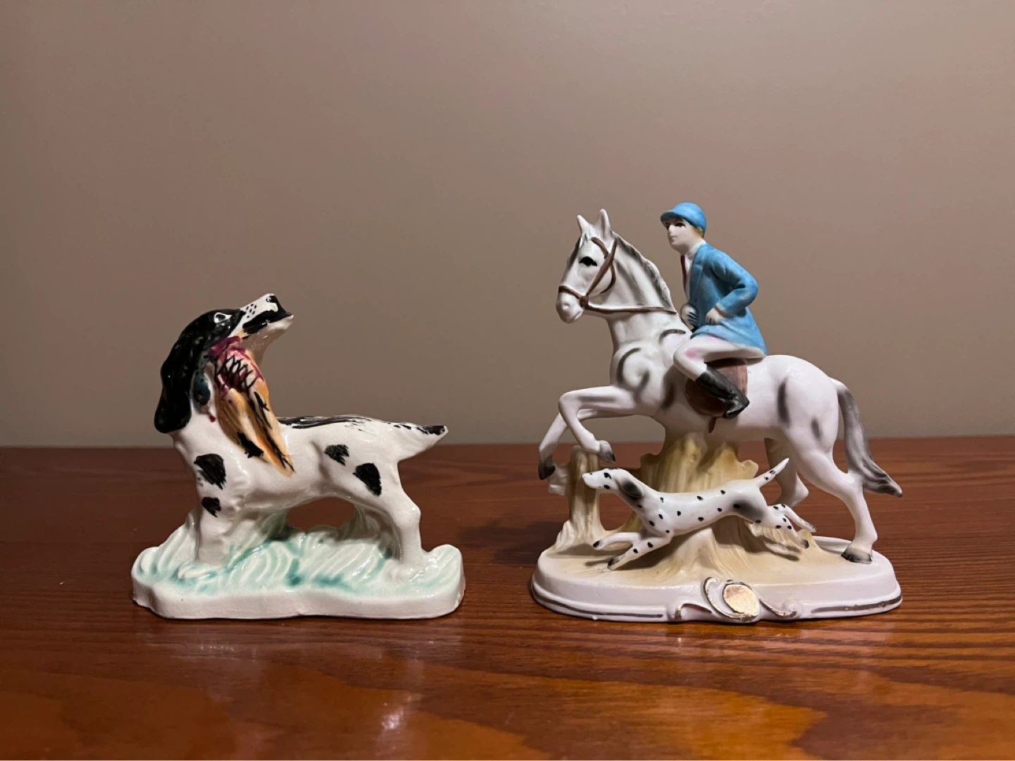 VINTAGE DOG WITH PHEASANT & FOX HUNTER WITH DOG FIGURINES