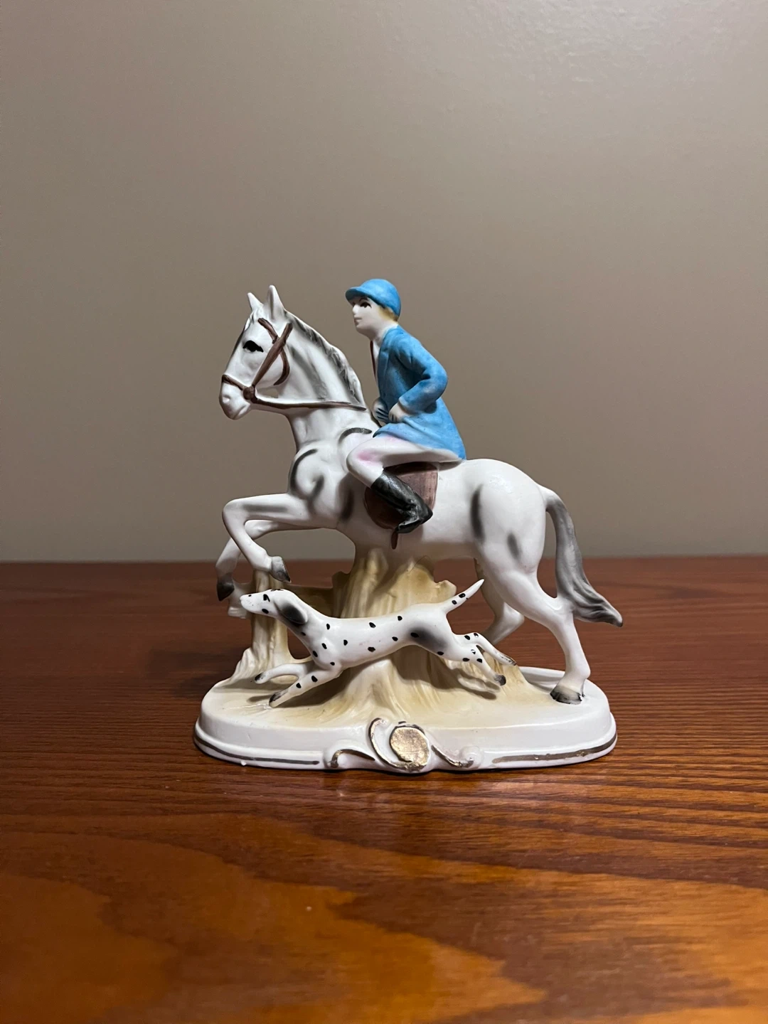 $65 Vintage Royal Crown bisque Hunter, horse and dog figurine.