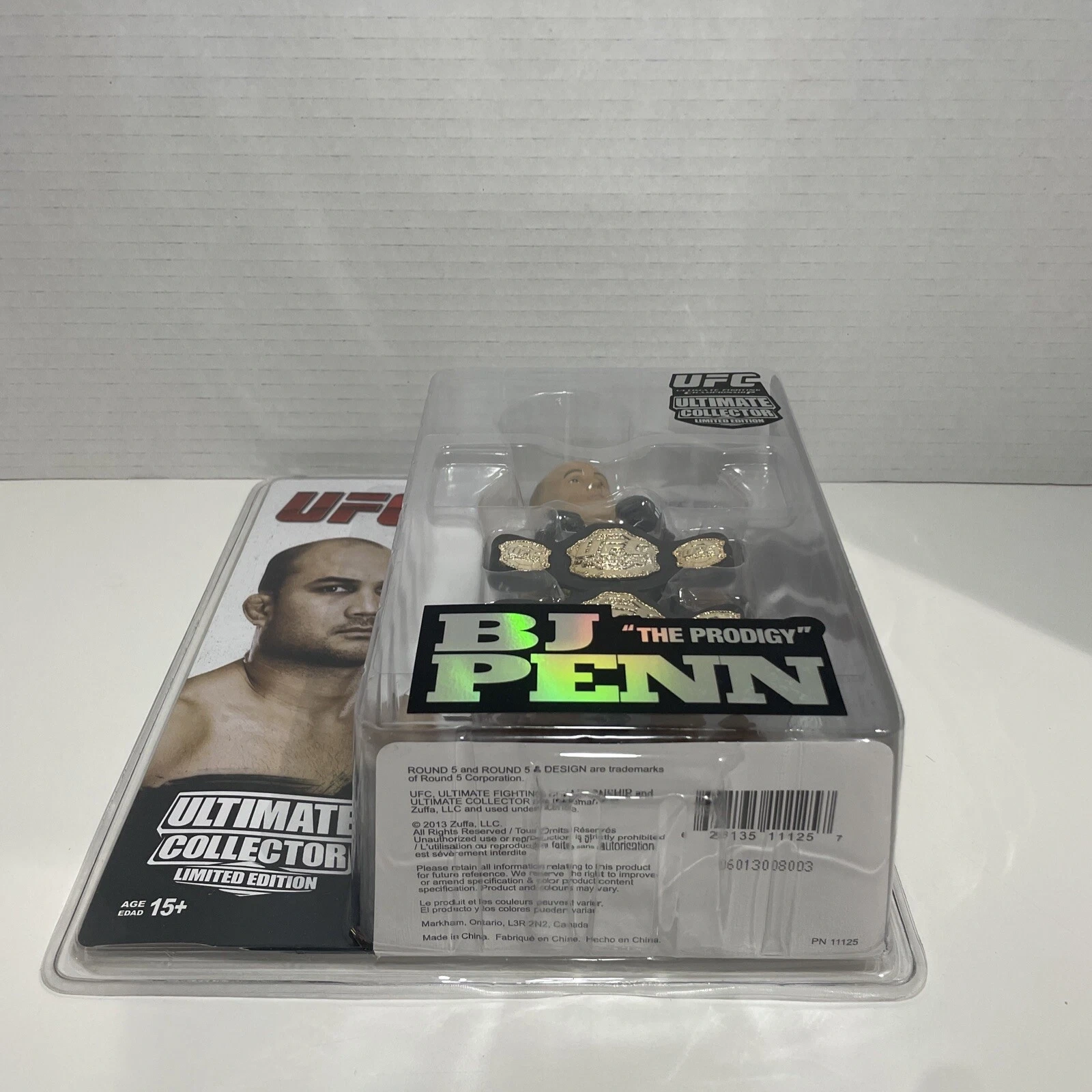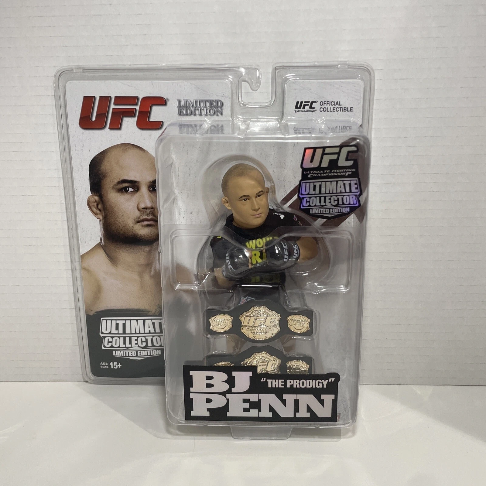 Round 5 Collectors UFC Ultimate Collector Series 2 Limited Edition Action Figure featuring BJ "The Prodigy" Penn. This is an original, unopened item from China, number 989 out of 1500. Includes belt. Suitable for ages 5+.