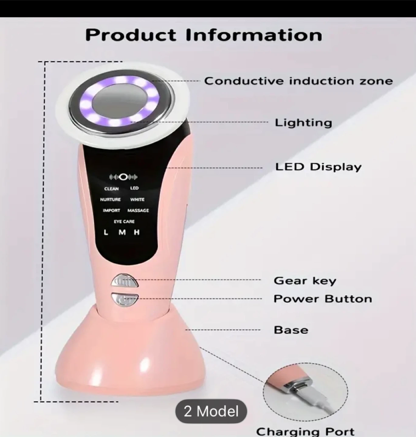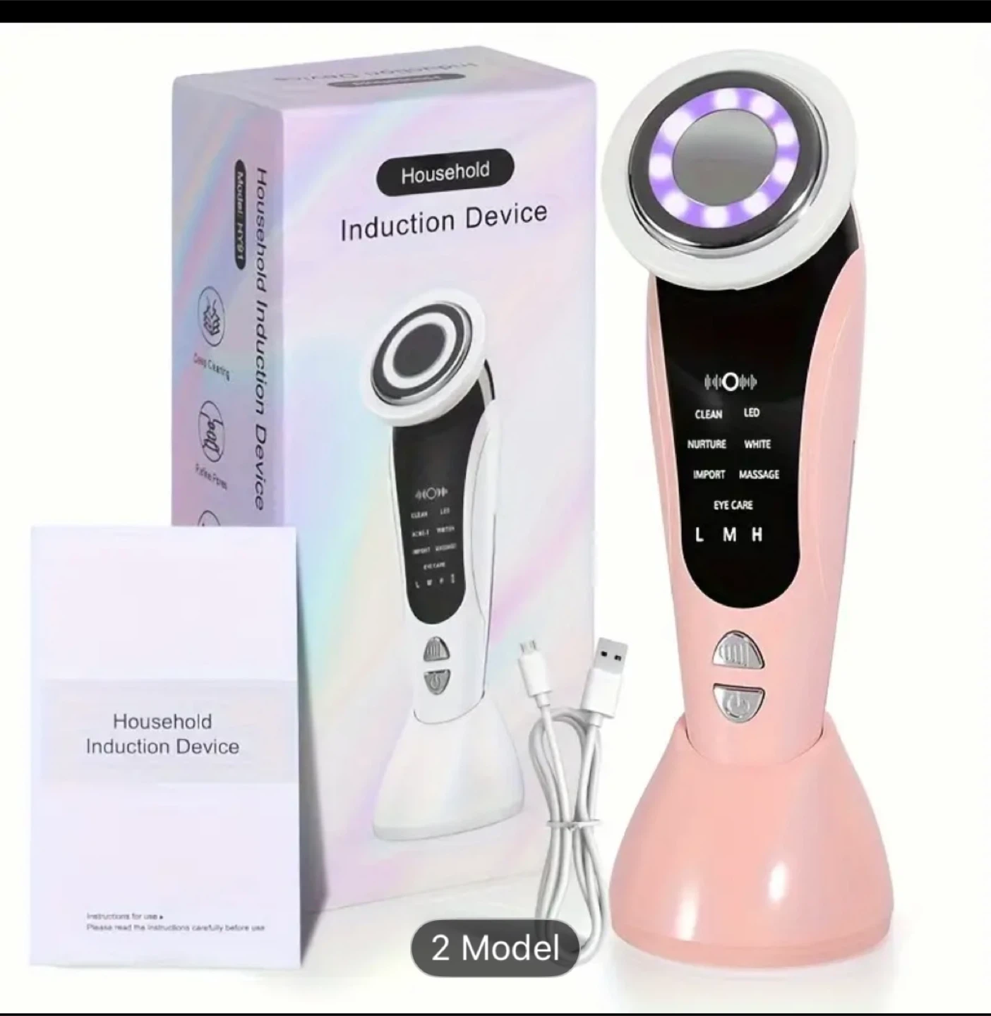 Selling a 7 in 1 Beauty Meter, Model Pink V9! It's a household induction device that comes with its original box and charging cable. It has multiple functions including clean, nurture, import, massage, and eye care