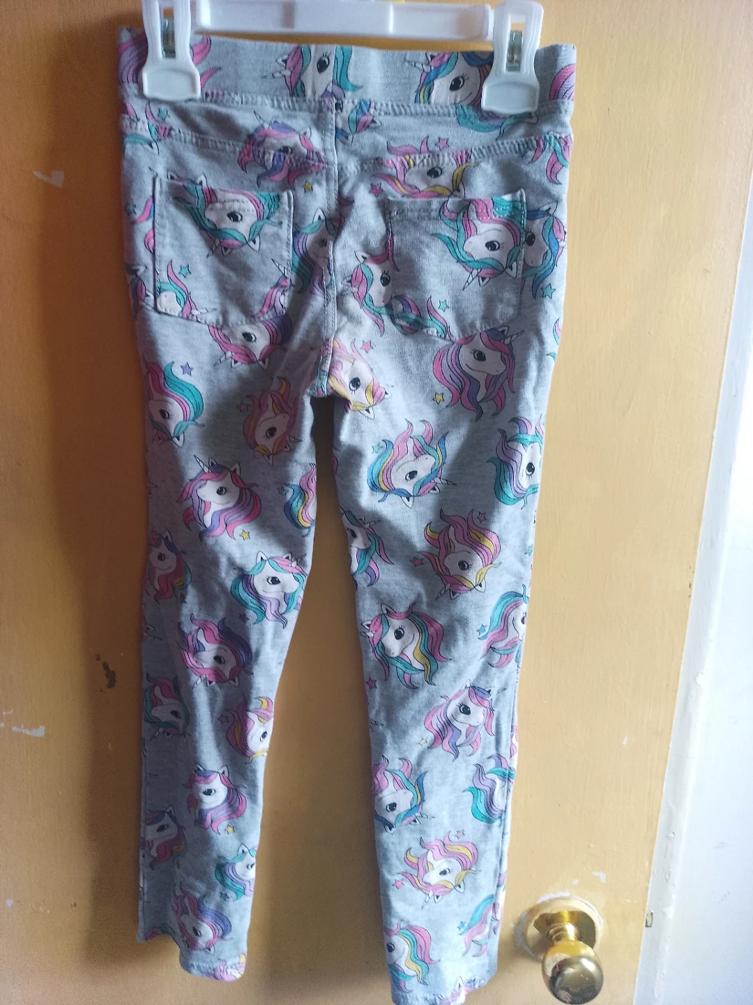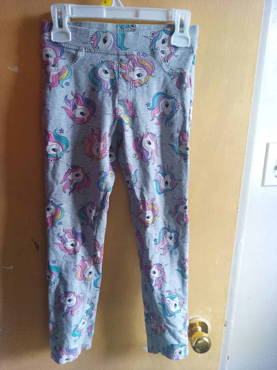 Grey leggings for kids with a fun unicorn print. It's a size 9-10 years. These would be great for everyday wear!