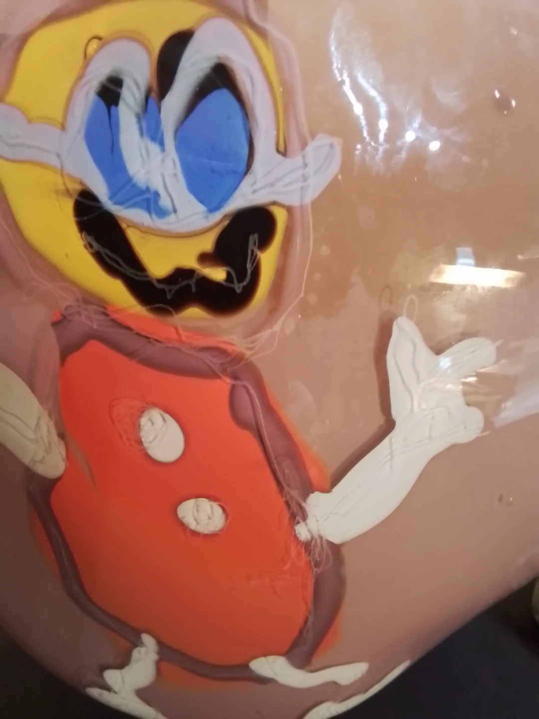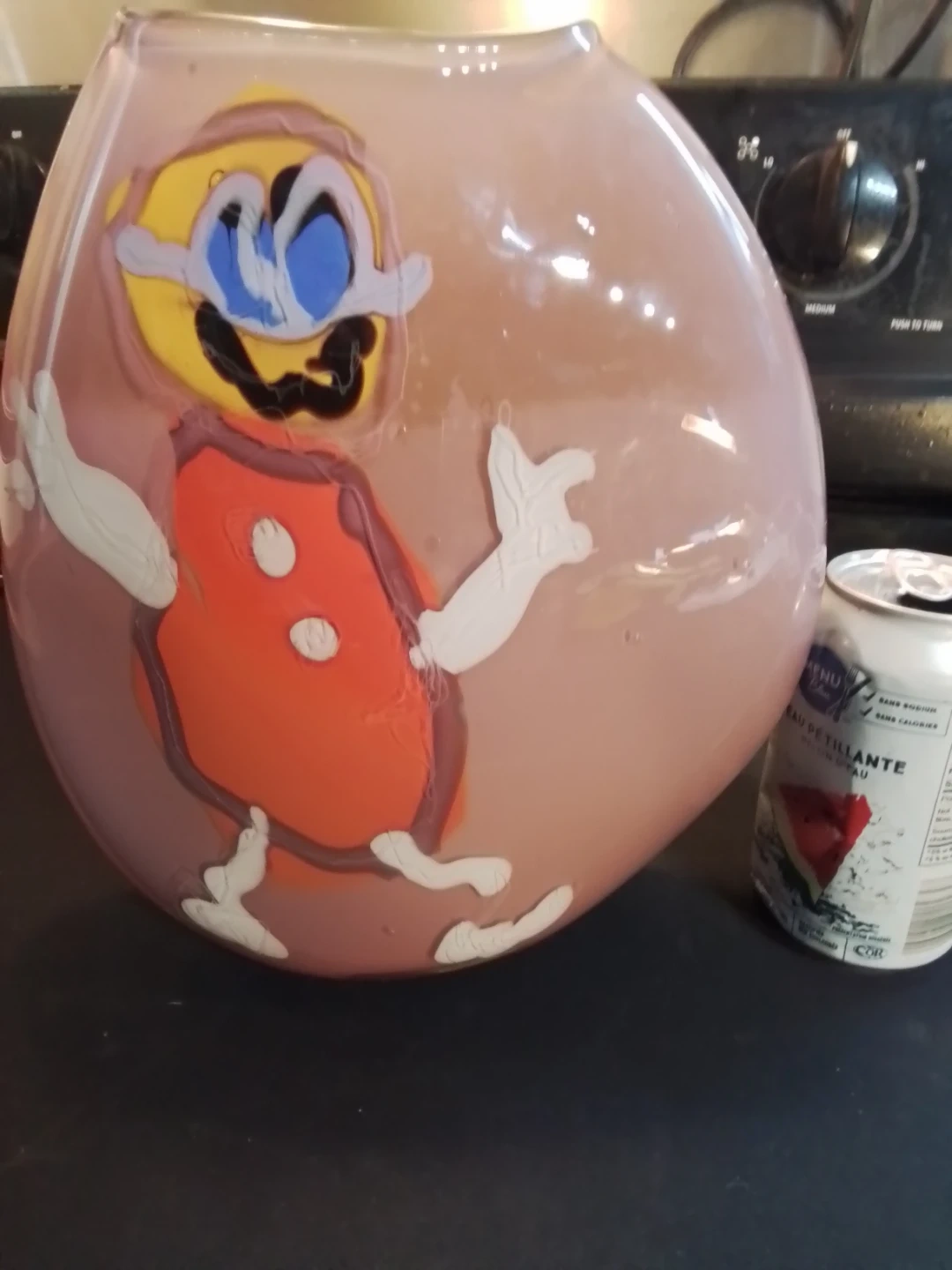 This art glass vase, signed by Timothy Lauren, stands approximately 10 inches tall and 9 inches wide, making it a striking decorative piece. Bearing the signatures from 1985 this vintage piece is a must-have for collectors. Its unique design is sure to be a conversation starter, adding character to any room it graces.