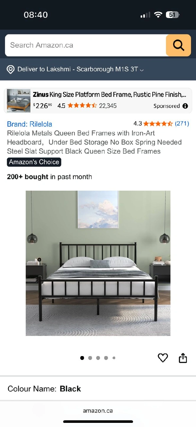30Looking to sell this Rilelola Metals Queen Bed Frame with Iron-Art Headboard! It has under-bed storage and no box spring is needed. The steel slat support is black. The dimensions are 38.6" x 60.7" x 83.2". It can hold up to 1200 lbs!