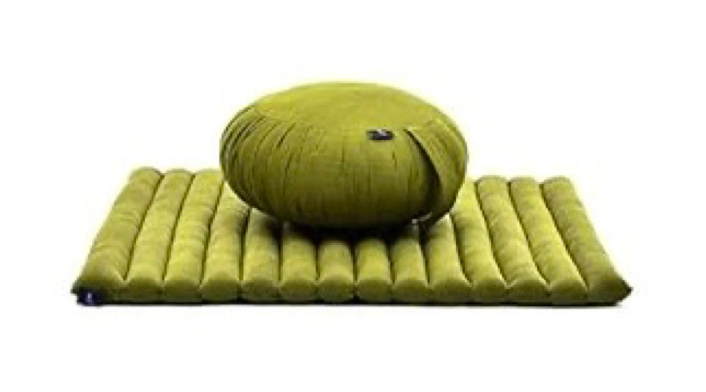 Olive green meditation cushion with mat