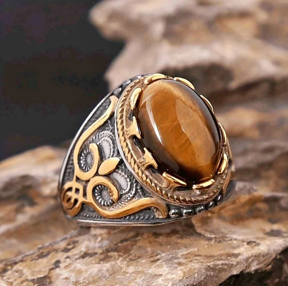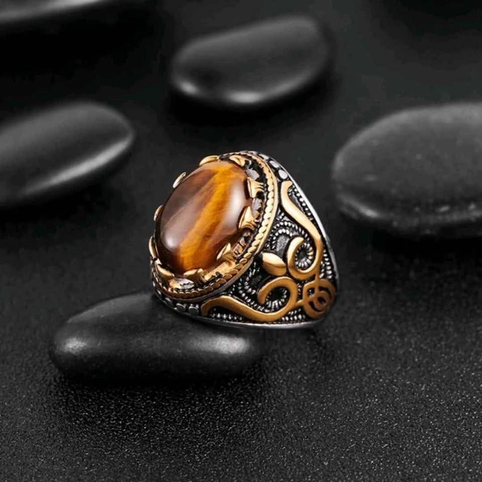 New Design Vintage Fashion Carved Tiger Eye Ring Suitable For Men Daily Wear. It's 13 size. For viewing or pickup every day from 5 pm to 9 pm