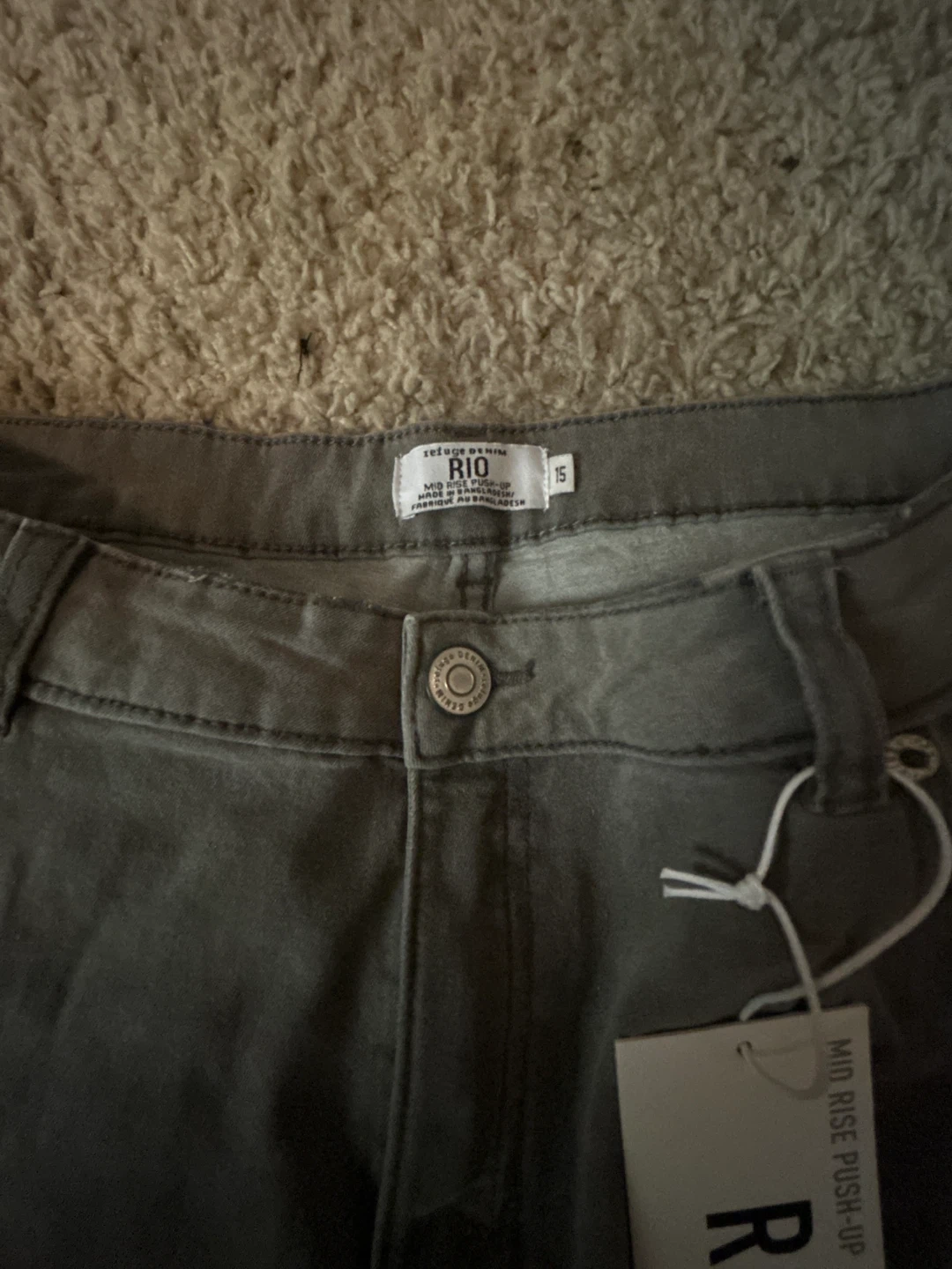 Rio denim mid rise push-up jeans in size 32. These jeans have a distressed look.