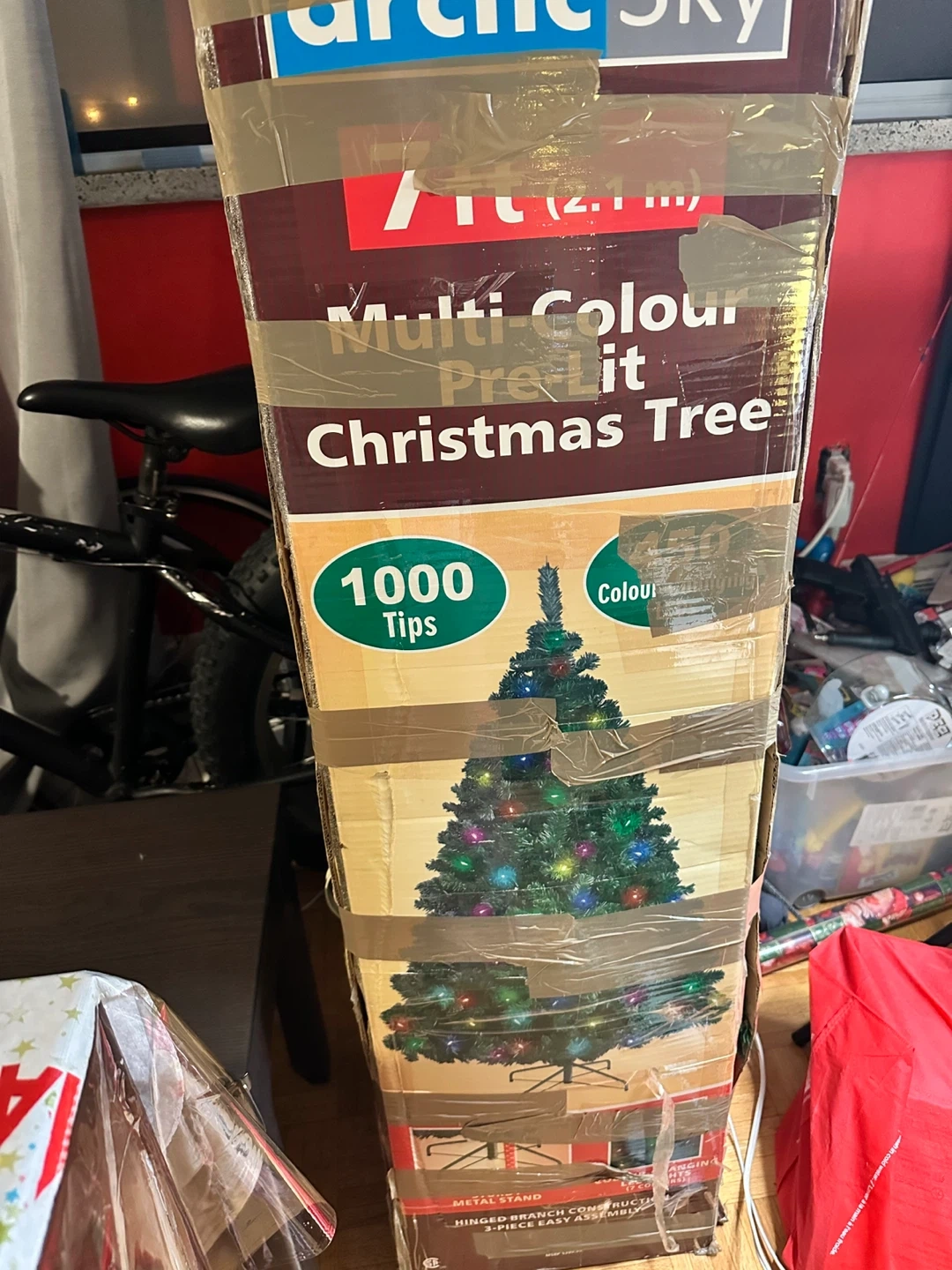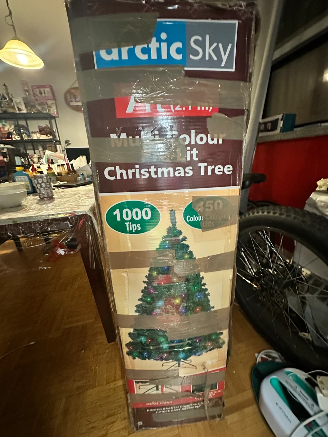 Christmas tree from Arctic Sky! The tree has 1000 tips and a metal stand. It's a hinged branch construction, making it easy to assemble. The box is included!