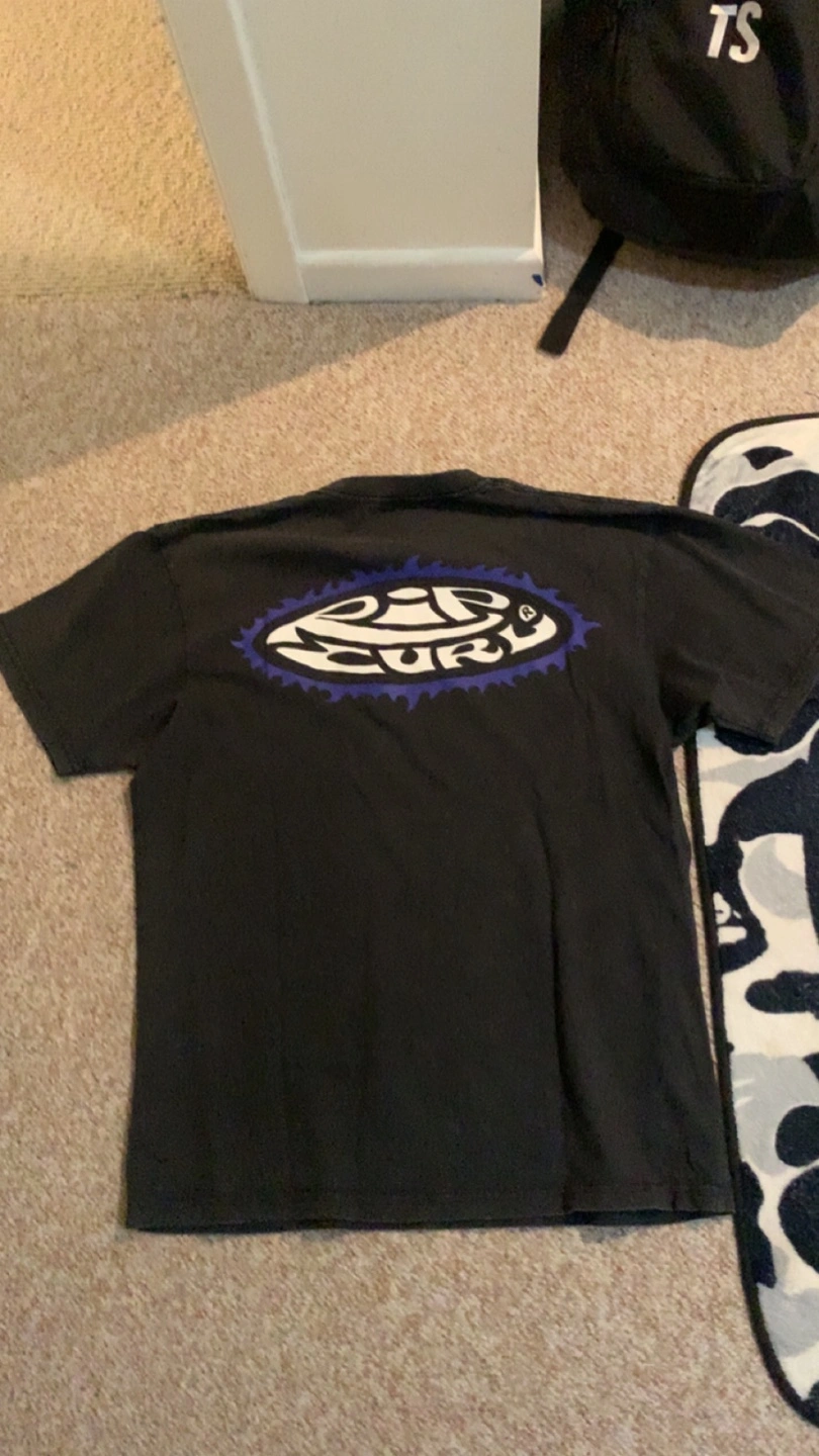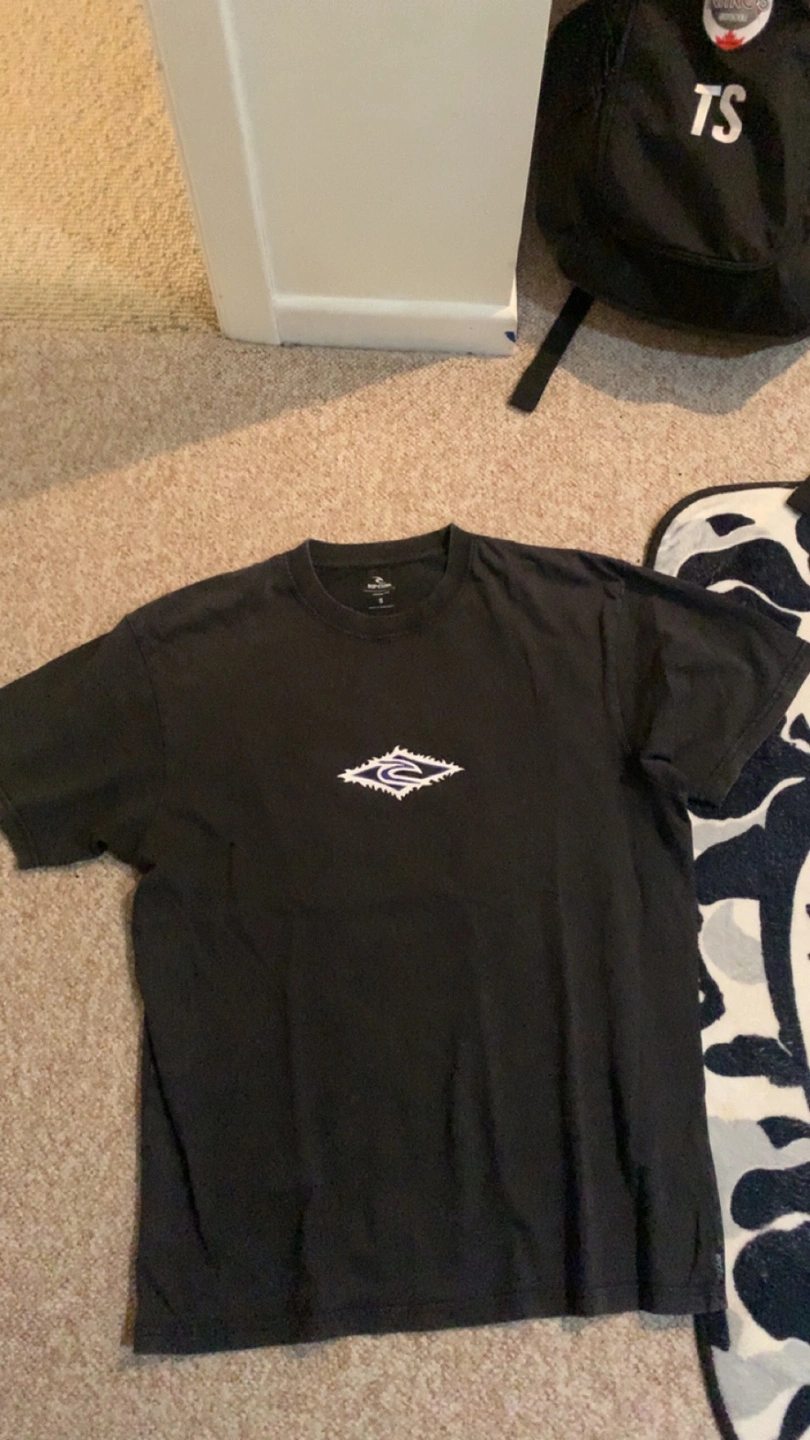 Black Rip Curl t-shirt. Features small logo on front and larger logo on back. Short sleeves. Great condition.