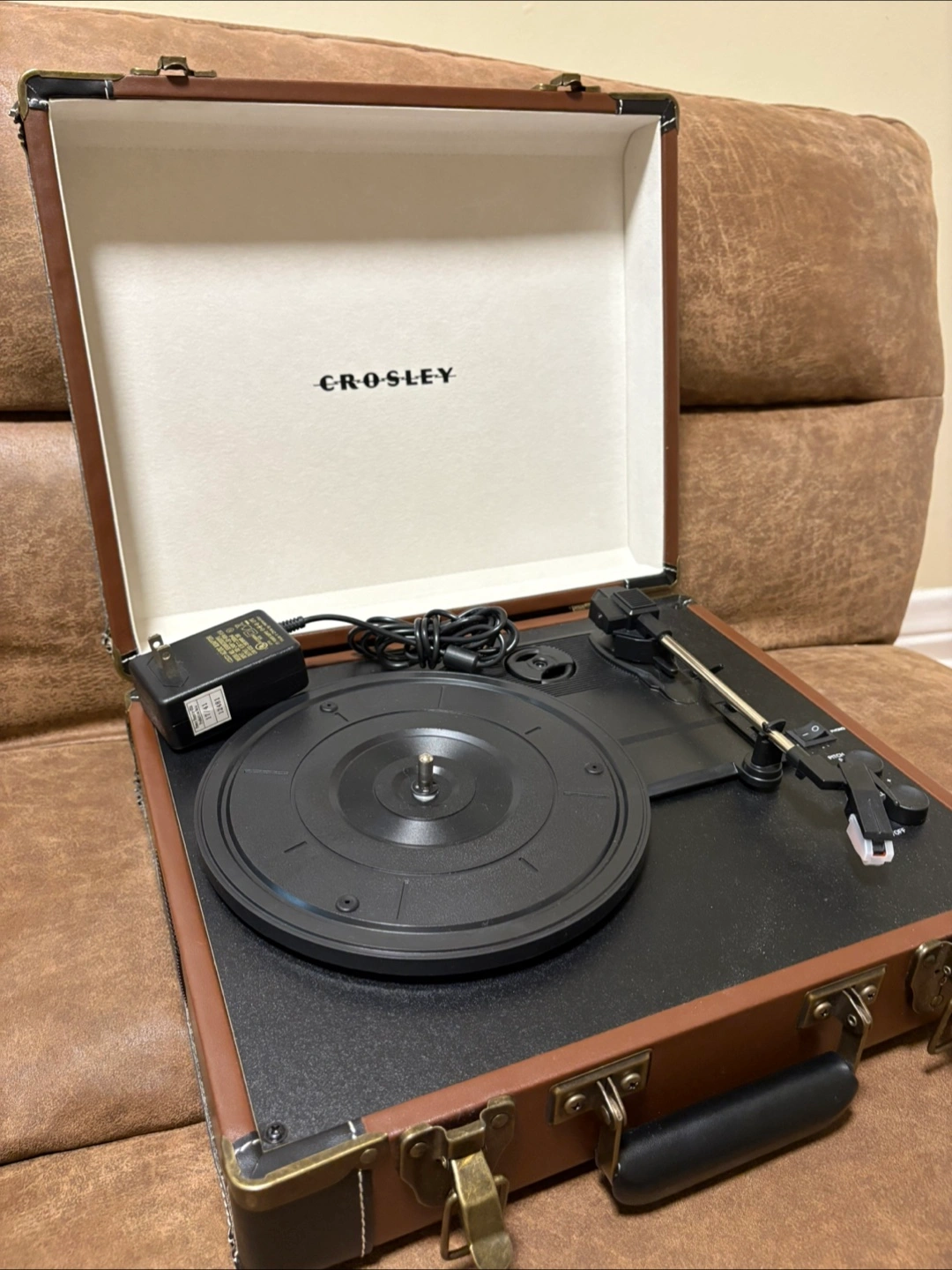 Selling a Crosley turntable! It comes with its original box and the necessary components for you to start spinning your favourite records. It's a great portable option for enjoying vinyl on the go!