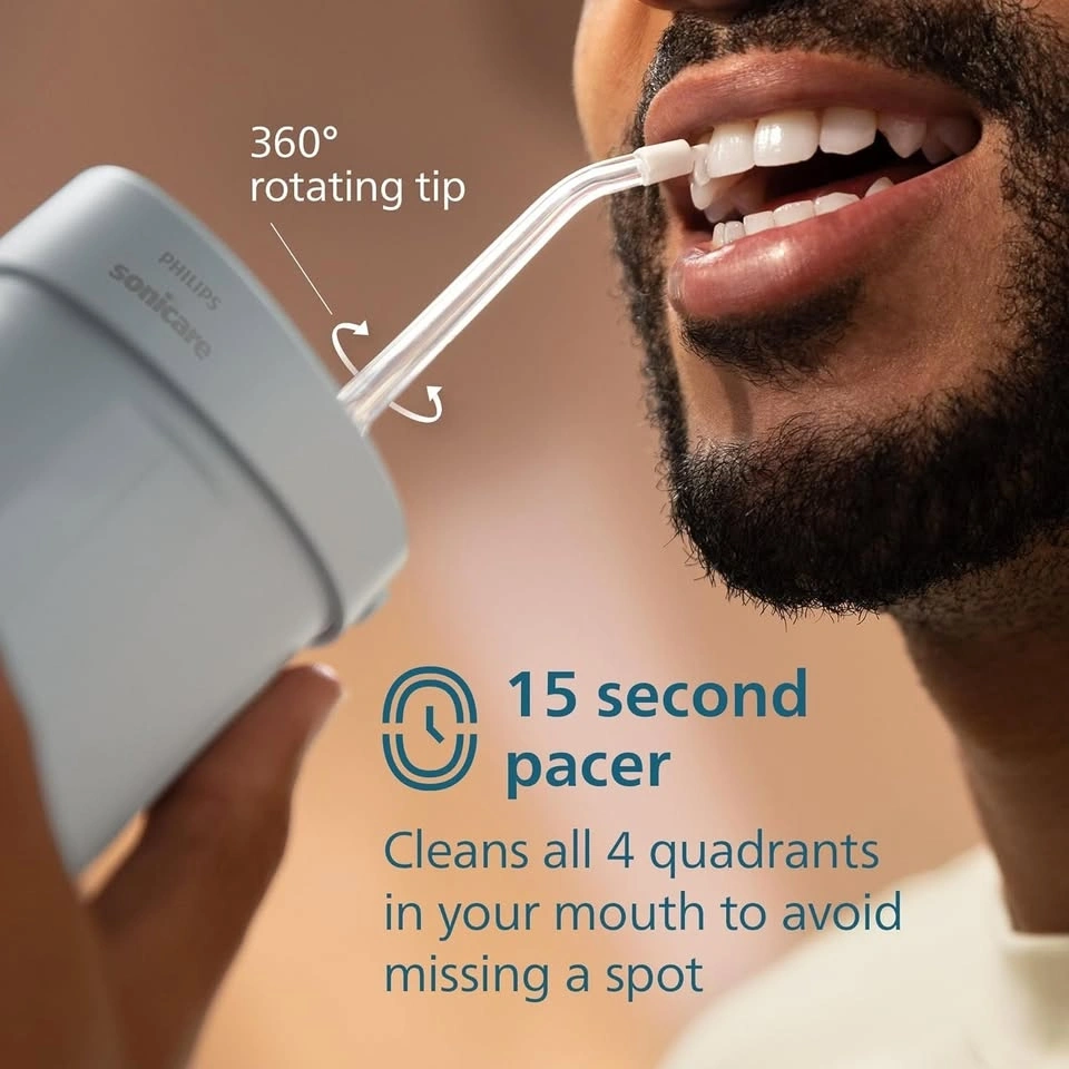 NEW in opened package (1 Nozzle Missing). Model# HX3333/24. This Philips Sonicare Compact Flosser removes up to 99.9% of plaque from between your teeth and along your gumline in just 60 seconds. It's lightweight, slim, portable, and easy to use with a collapsible 200 ml reservoir for a 1-minute clean. Features three flossing modes: Pulse, Clean, and Sensitive. Comes with two nozzles (N1 Standard and N2 Comfort) that rotate 360 degrees. Includes a 15-second pacer to guide you through quadrants. Feel free to message if you have any questions!