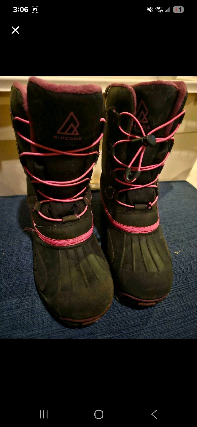 15Selling a pair of Ripzone winter boots in a kids size 3.. They're black with pink accents and laces. Perfect for keeping little feet warm and dry this winter!