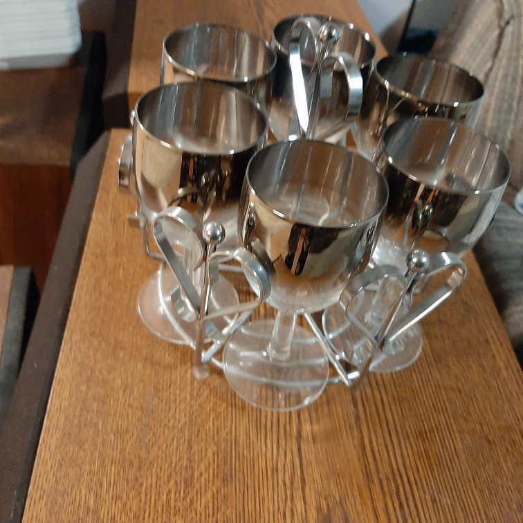 Six Vintage Silver Rimmed Wine Glasses with Holder