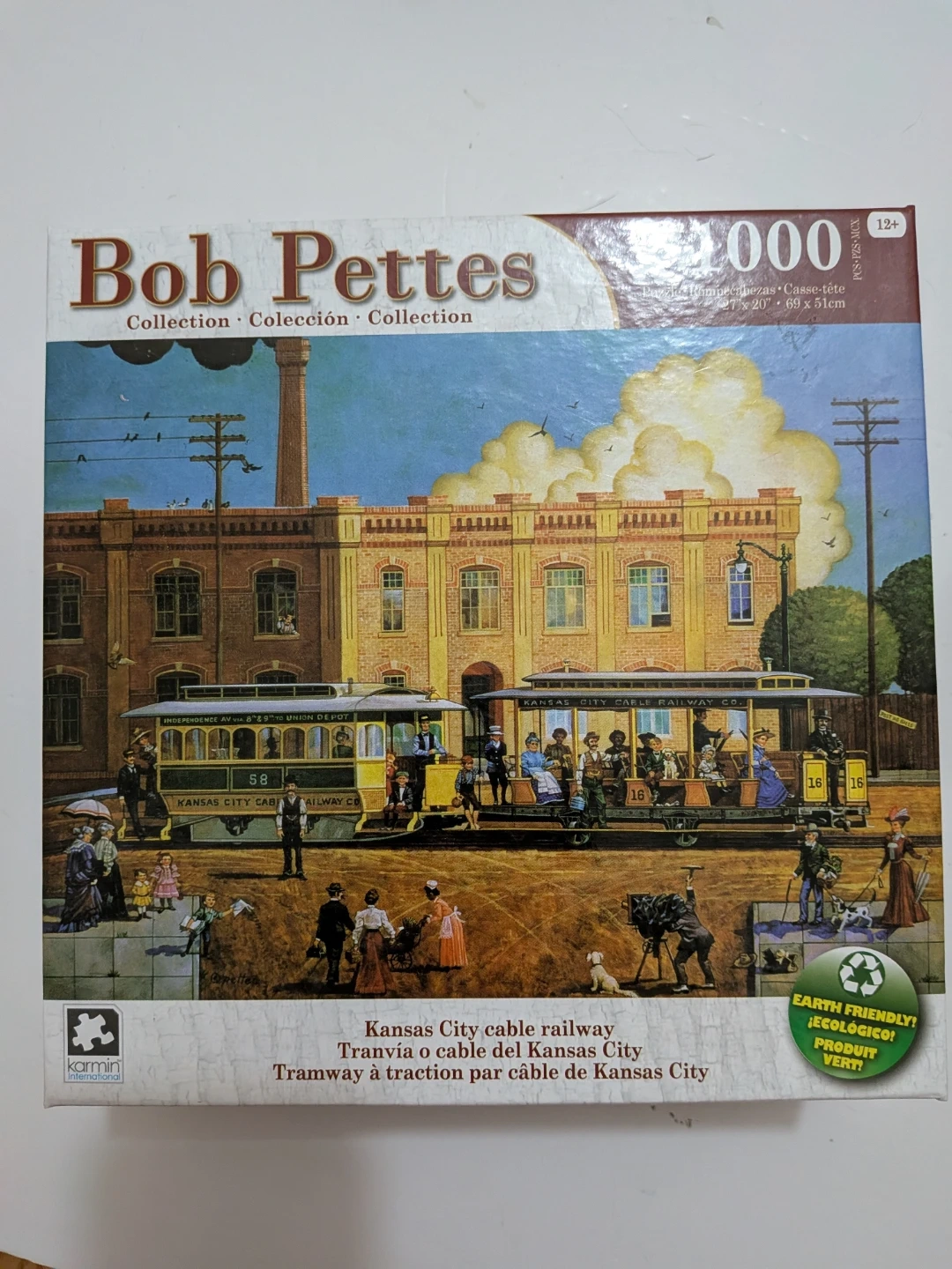 Bob Pettes 1000 piece jigsaw puzzle featuring the Kansas City cable railway. It measures 27" x 20" or 69 x 51cm. The puzzle is made by Karmin International.